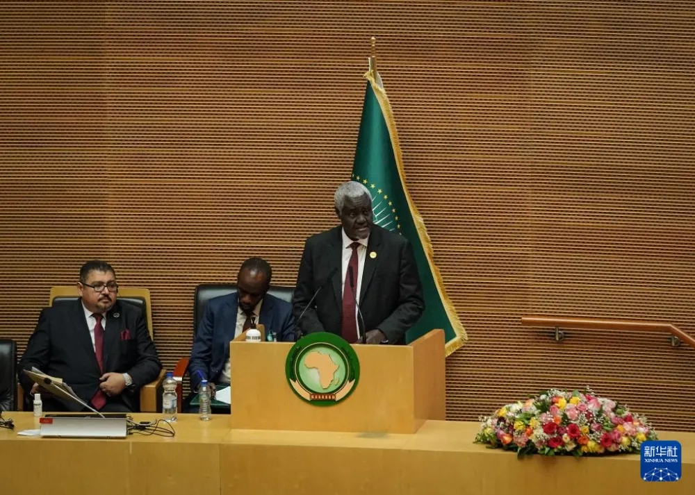 2月(yue)15日,在埃塞俄比亞(ya)首都亞(ya)的斯亞(ya)貝巴,非(fei)盟委員會主席法(fa)基在開幕式上發言(yan)。