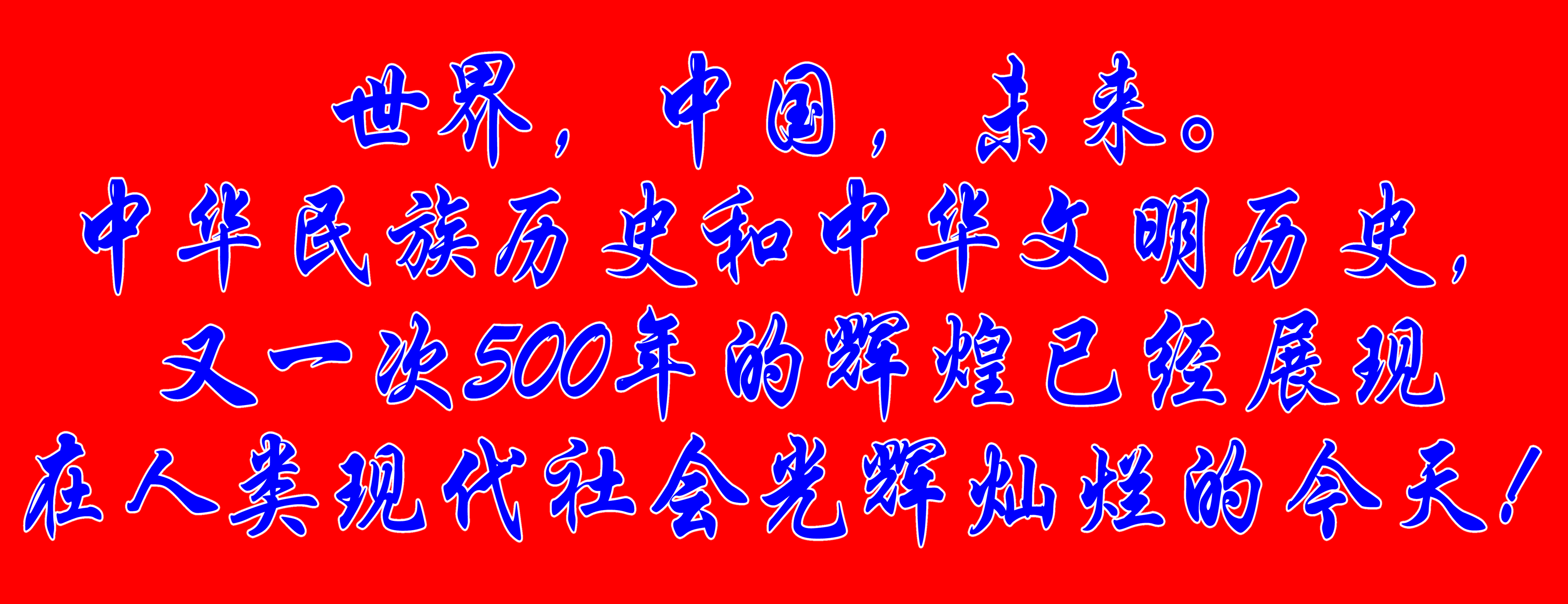 中華民族歷史和中華文明歷史,又一次500年的輝煌已經展現在人類現代社會光輝燦爛的今天!