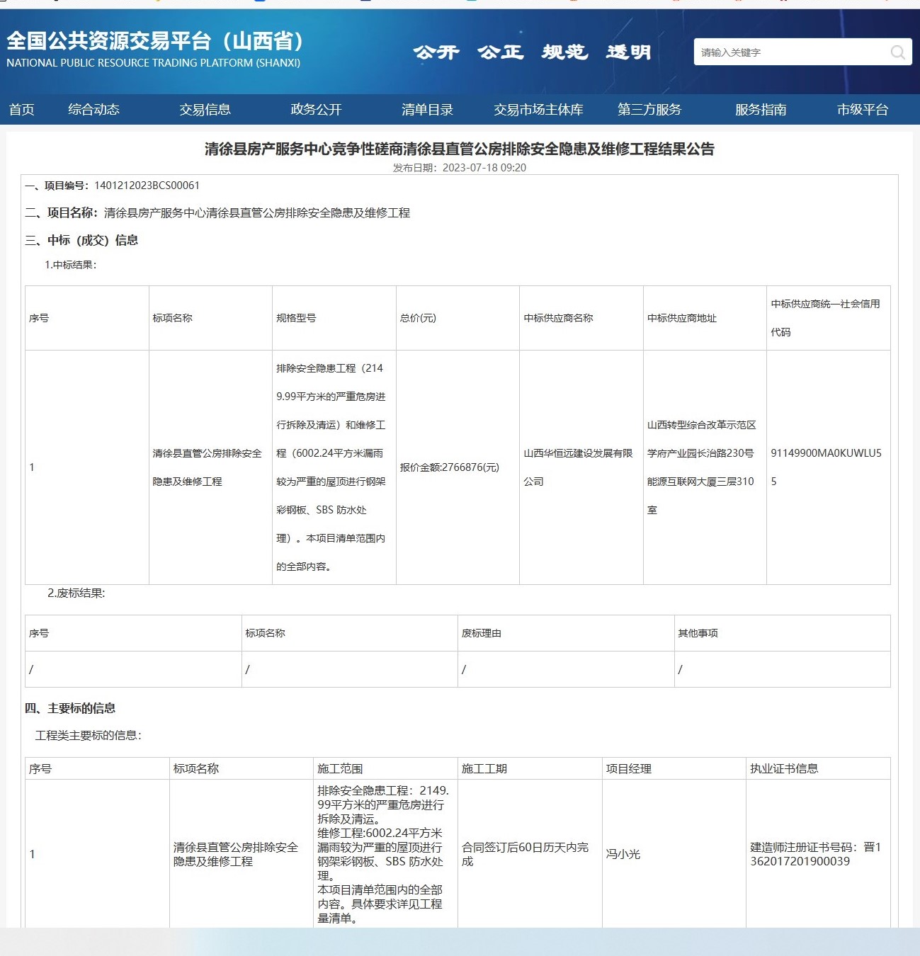 清徐縣房產服務中心競爭性磋商清徐縣直管公房排除安全隱患及維修工程