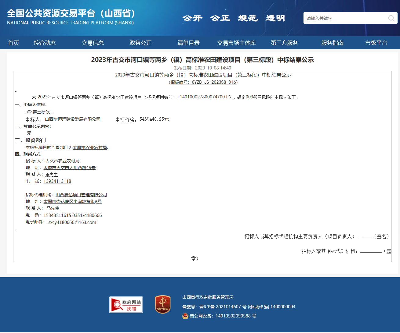 2023古交市河口鎮等兩鄉(鎮)高標準農田建設項目(第三標段)