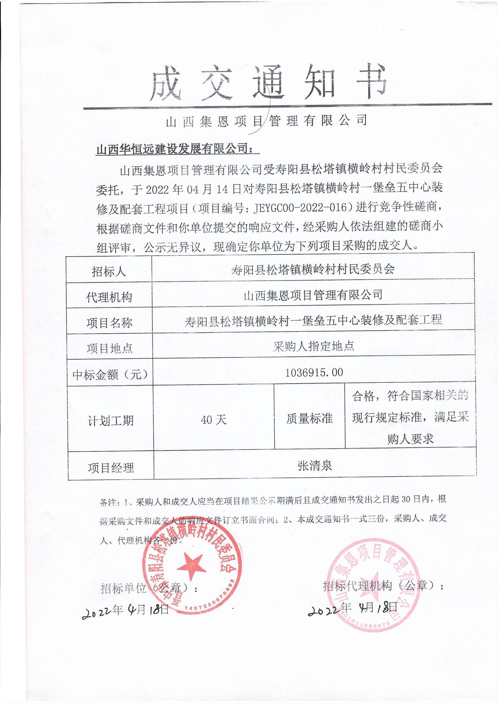 壽陽縣松塔鎮橫嶺村堡壘五中心裝修及配套工程