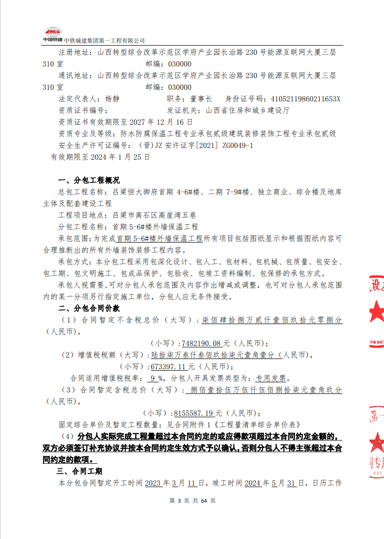 呂梁恒大御府首期 4-6#樓、二期 7-9#樓、獨立商業、綜合樓及地庫 主體及配套建設工程