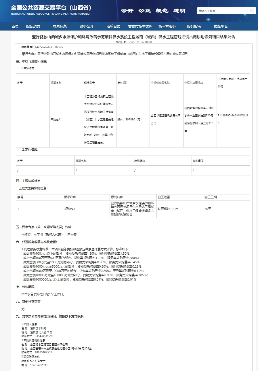 亞行貸款山西城鄉水源保護和環境改善示范項目供水系統工程城南(城西)供水工程管線埋設占用耕地恢復項目