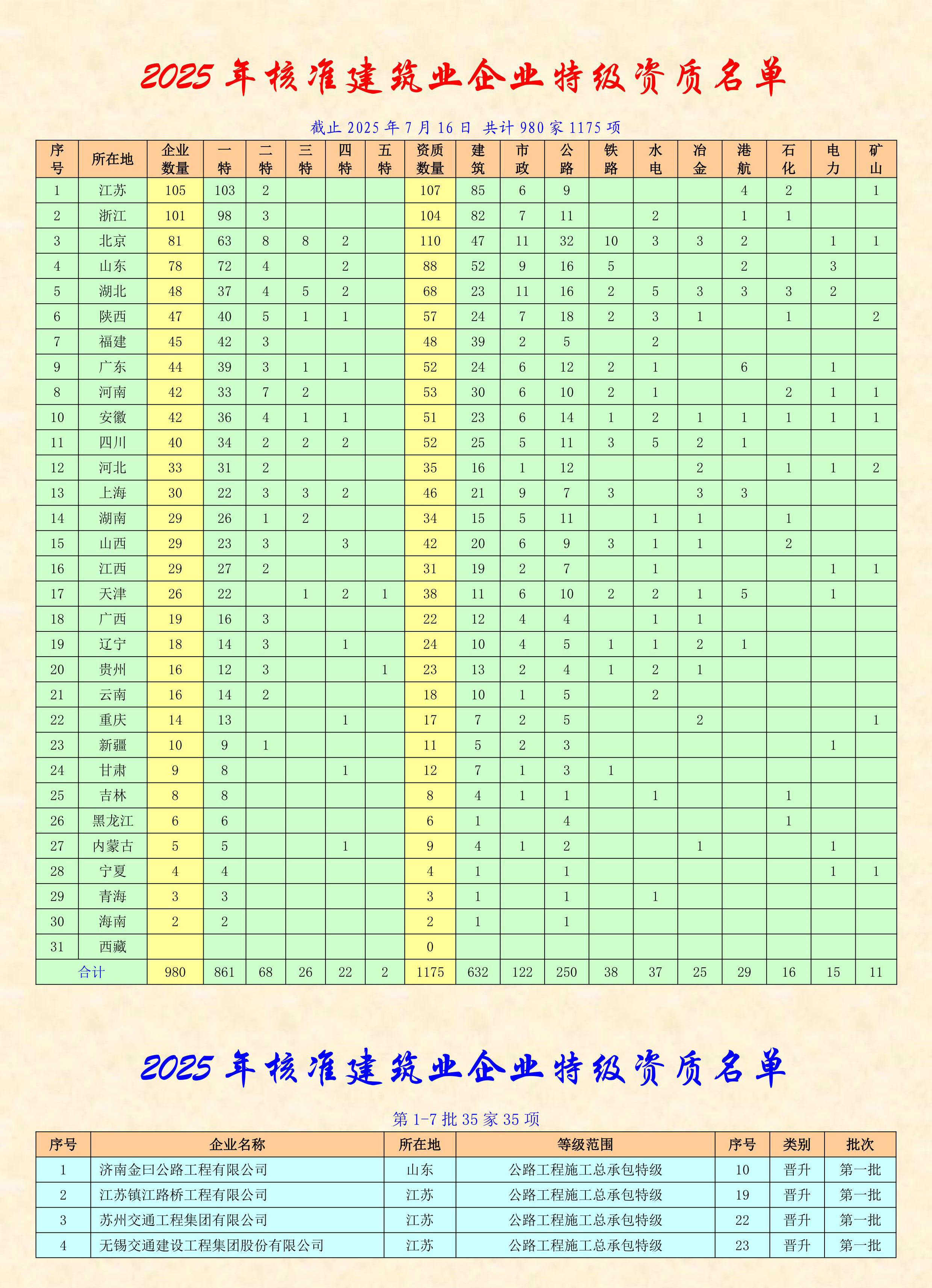 根據(ju)《中華人民(min)共和國建(jian)筑(zhu)法》及有關(guan)建(jian)設(she)工程(cheng)企業(ye)資質(zhi)管理(li)規定,現將我部(bu)核(he)準的工程(cheng)勘察(cha)資質(zhi)、工程(cheng)設(she)計資質(zhi)、建(jian)筑(zhu)業(ye)企業(ye)資質(zhi)、工程(cheng)監(jian)理(li)企業(ye)資質(zhi)的單位(wei)名單(2025年度(du)(du)第七批(pi))予以公布(bu)。未予核(he)準的單位(wei)可登錄住房城鄉(xiang)建(jian)設(she)部(bu)政務服務門戶,點(dian)擊(ji)“申請事項(xiang)辦理(li)進度(du)(du)查(cha)詢(xun)(受理(li)發證信息查(cha)詢(xun))”欄目查(cha)詢(xun)原因(yin)。