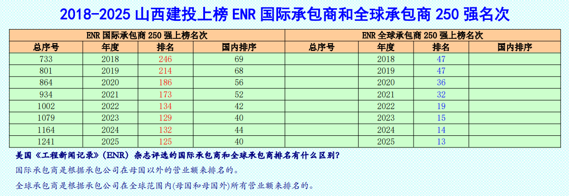 8月21日,入圍2025年度“全球最大250家國際承包商”(部分企業本年度采取合并申報或未申報)。