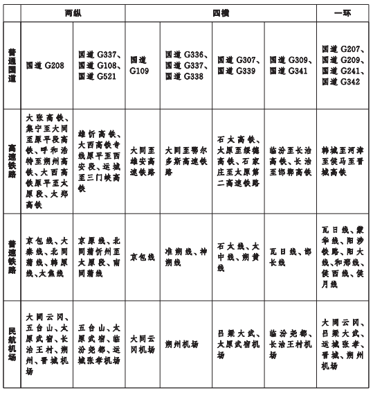 《綱要》提出,推進綜合交通統籌融合發展。推進各種運輸方式統籌融合發展,統籌綜合交通運輸通道規劃建設,統籌綜合交通樞紐一體化規劃建設,推動城市內外交通有效銜接,推進城市內外交通設施互聯、票制互通、安檢互信、信息共享、支付兼容。推進交通基礎設施網與運輸服務網、信息網、能源網融合發展。推進區域交通運輸協調發展,推進山西中部城市群交通運輸一體化發展,統籌城鄉交通運輸一體化發展。推進交通與郵政快遞、現代物流、旅游、國防戰備以及其他相關產業融合發展。