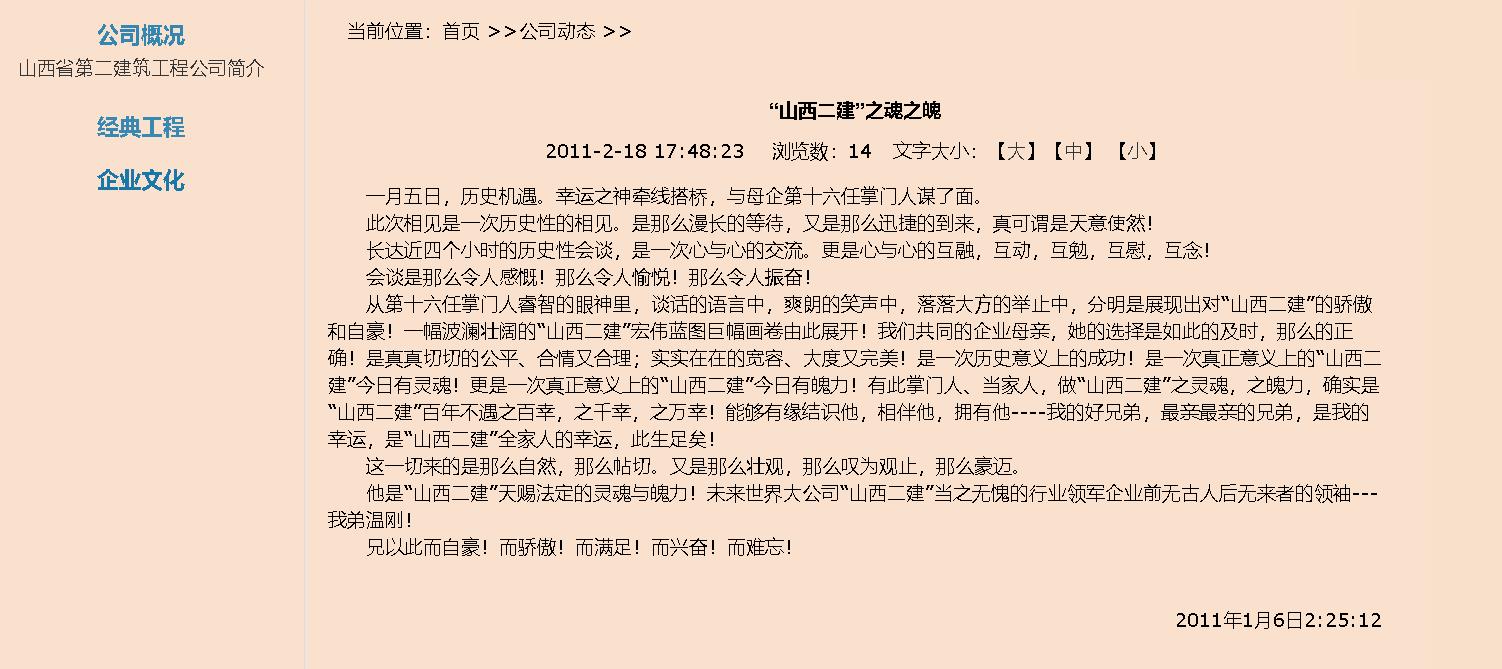 山西二建集團有限公司是我的母親,我是她忠誠的兒子,永遠陪伴老媽媽一生一世,永不分離!讓她的胸懷和抱負釋放,幫助更多的行業同仁得到成功的經驗和機遇,這就是不折不扣執行母親的愿望,把華恒遠(yuan)推上發展的快(kuai)車道(dao),實(shi)現實(shi)業報(bao)國之心之志,為中華民族偉大復興的中國夢早日實現奉獻一個企業家的使命和擔當!