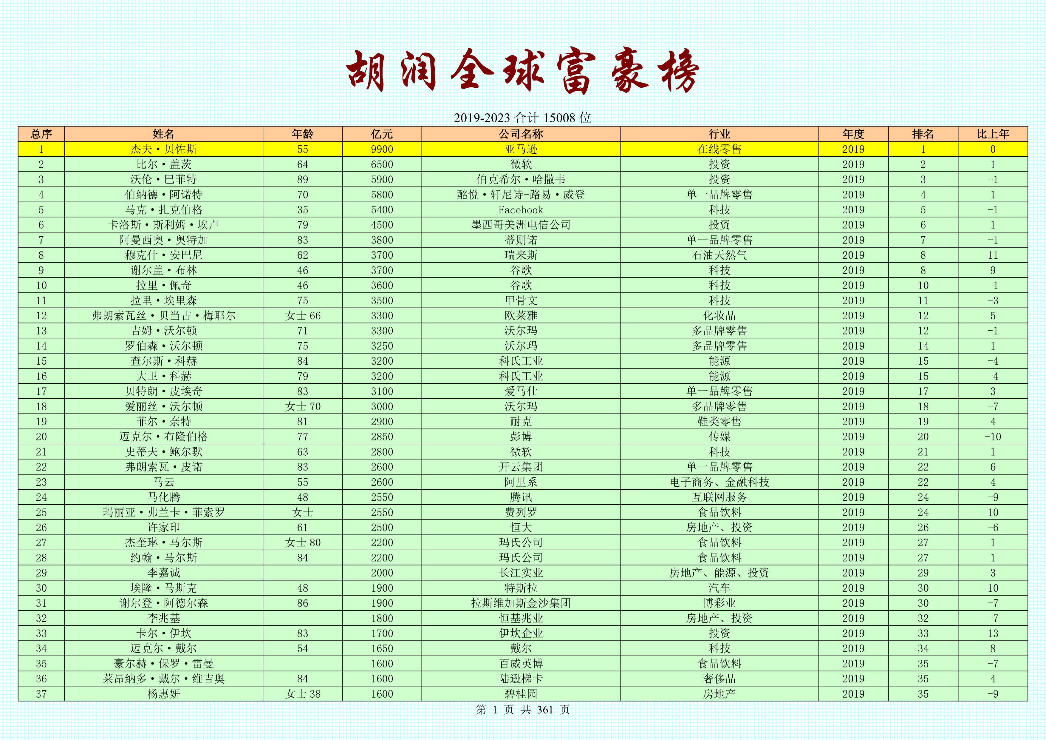 2023胡潤全球富豪榜