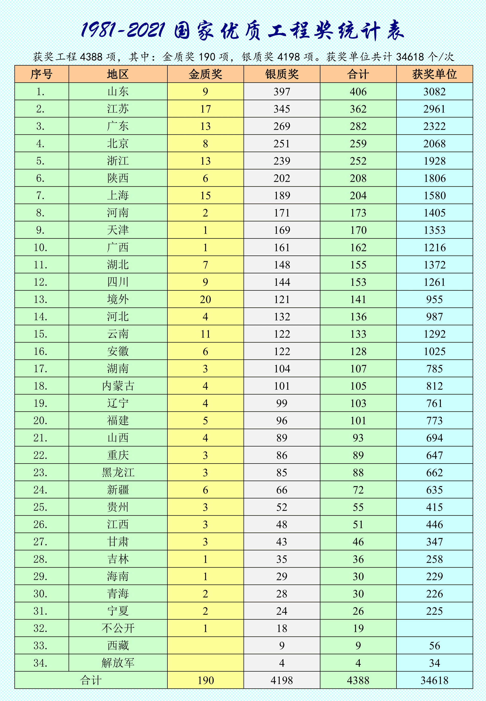 【行業資料】歷年國家優質工程獎山西獲獎名單