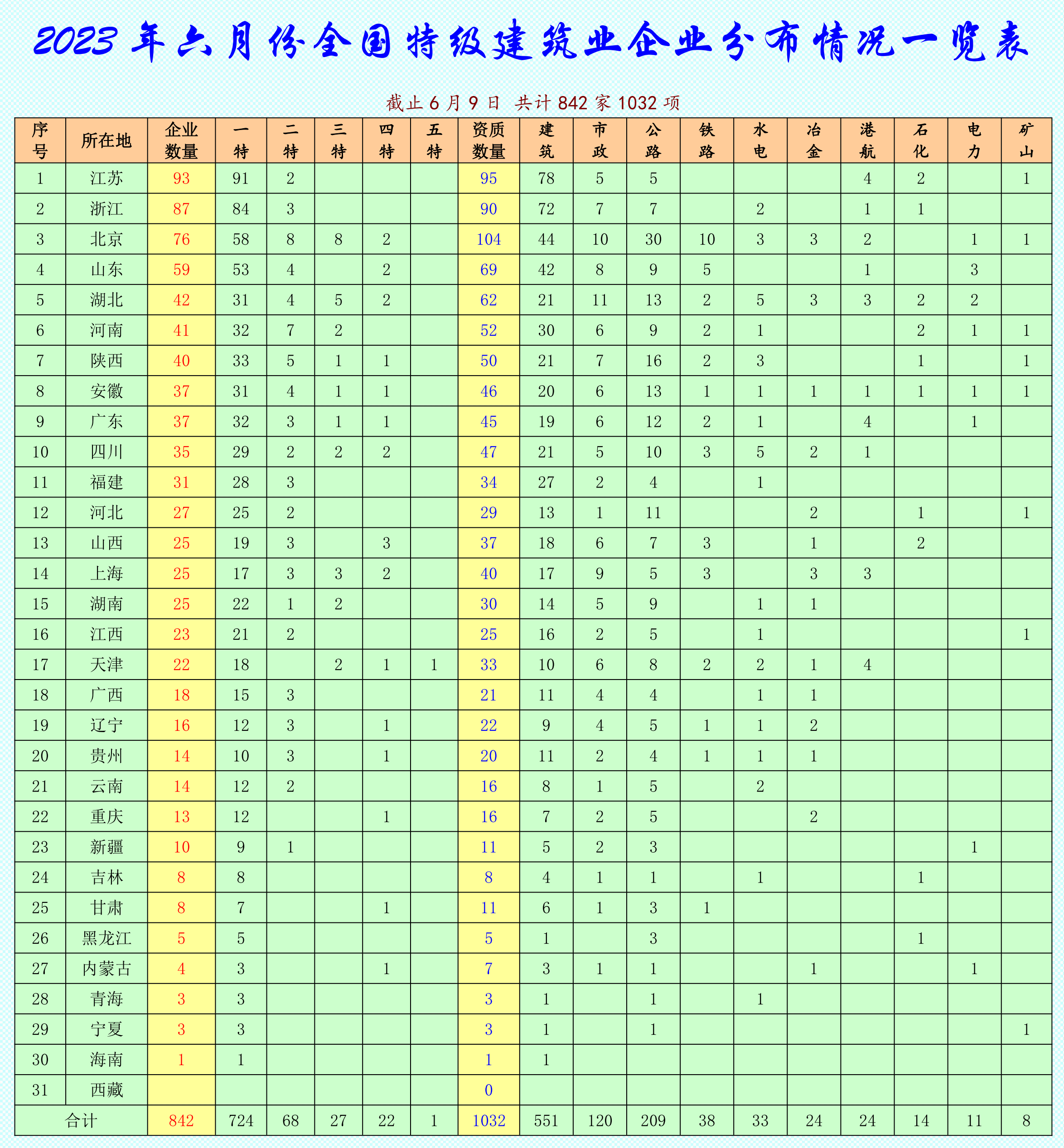 【學習園地】2023年四月份全國特級資質建筑業企業名單829家1019項