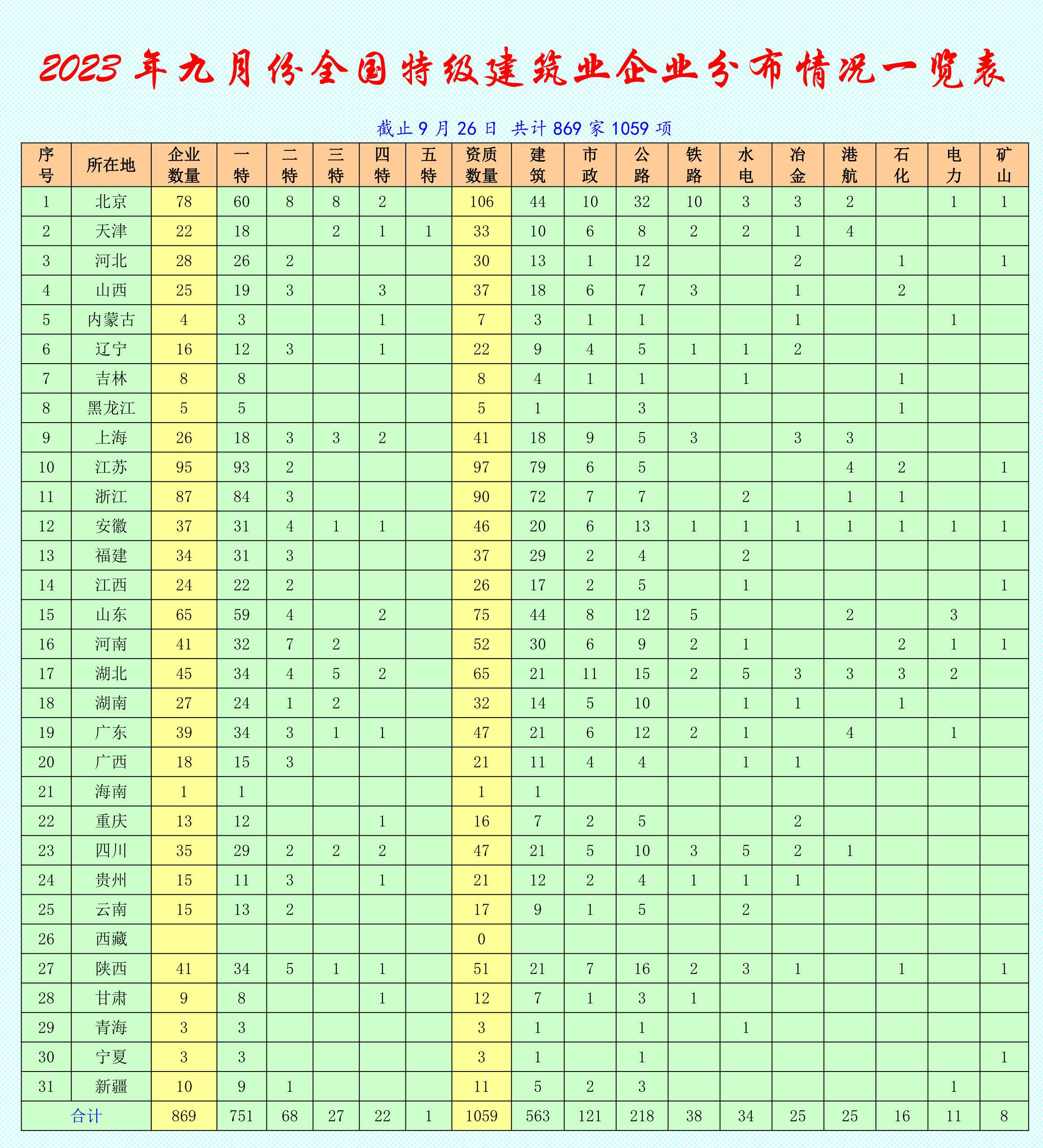 【學習園地】2023年四月份全國特級資質建筑業企業名單829家1019項