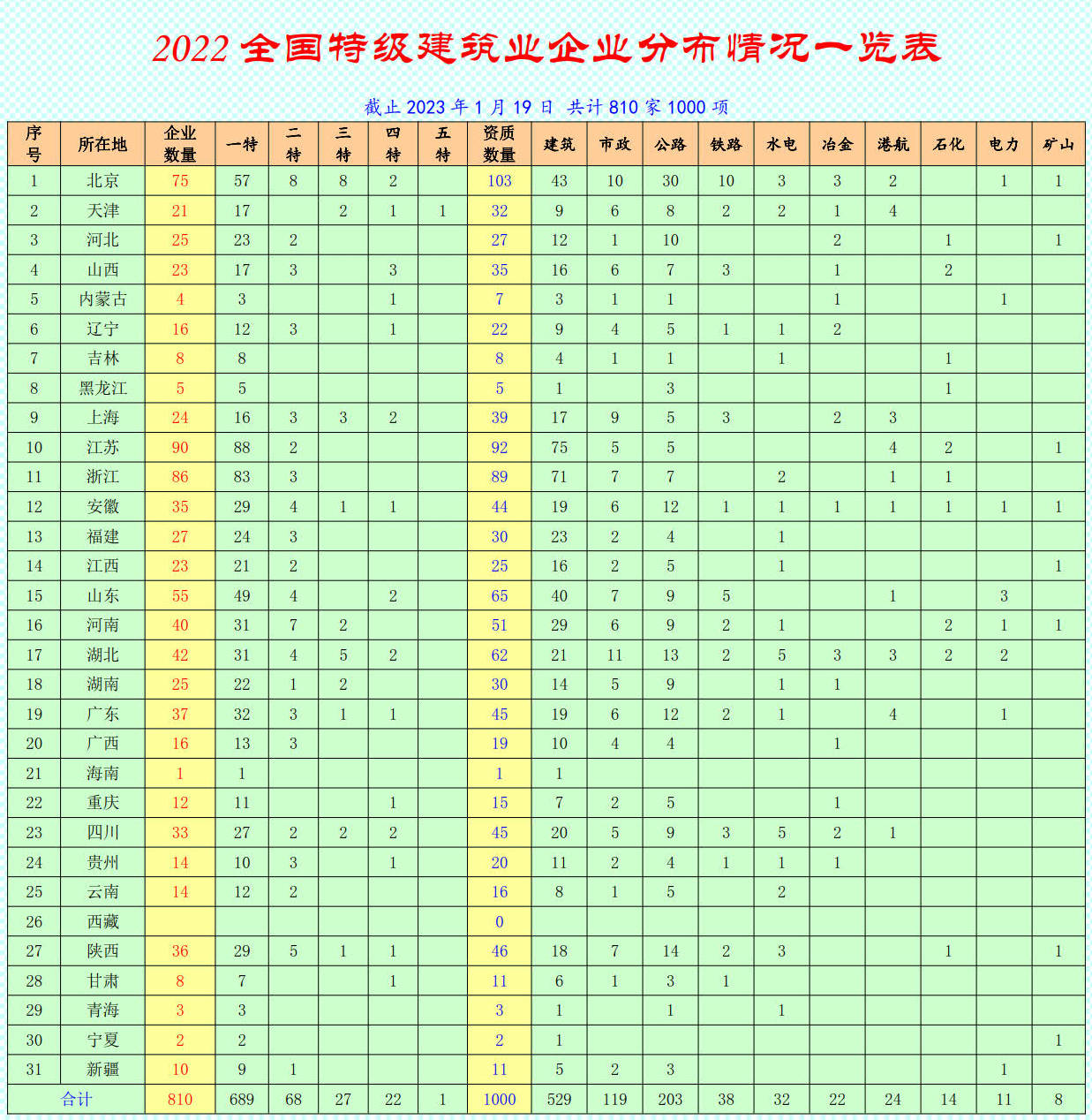 2023版全(quan)國特(te)級資質(zhi)建筑業(ye)企業(ye)名單