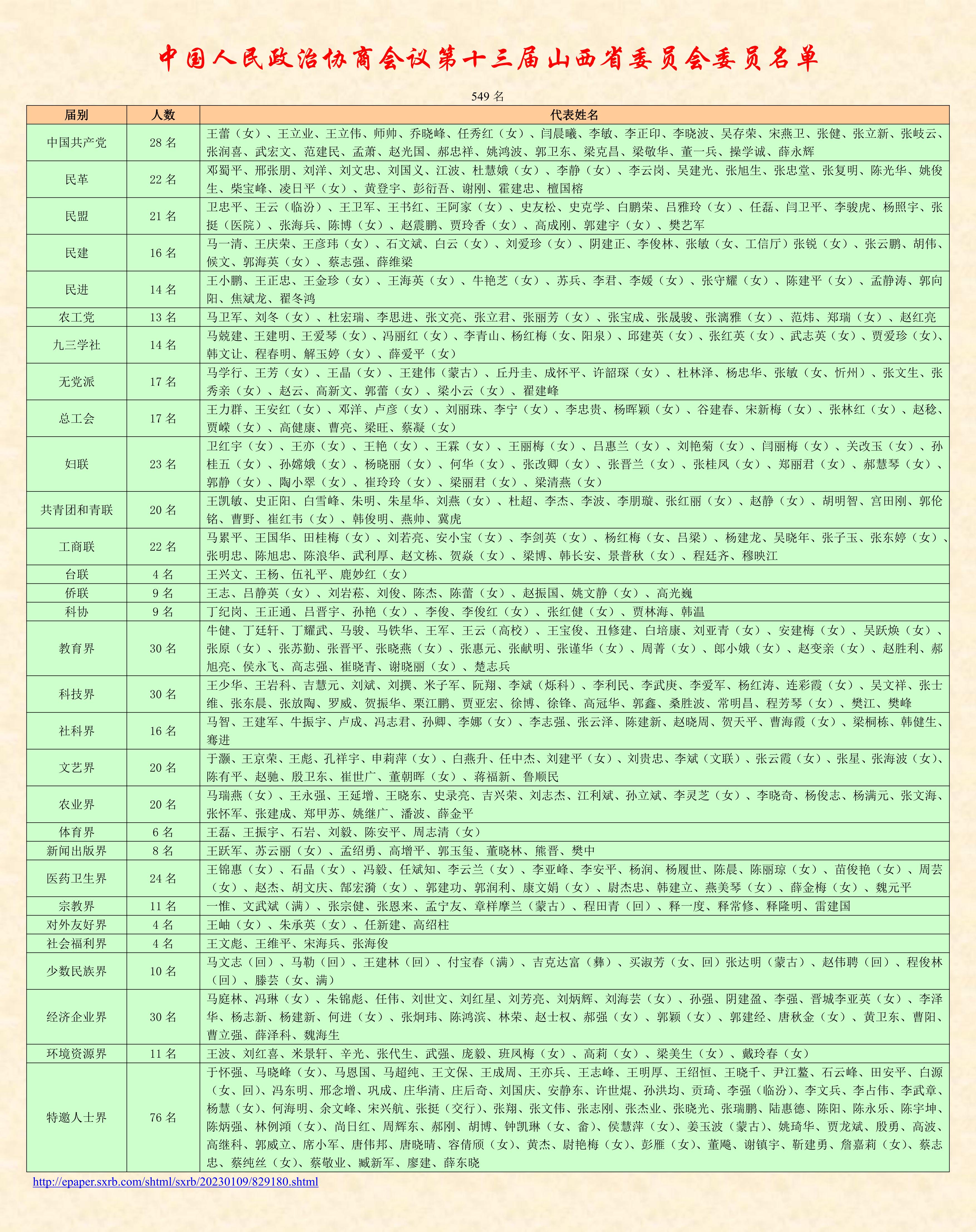 中國人民政治協商(shang)會(hui)議第十三屆山西省委(wei)員會(hui)委(wei)員名單549名