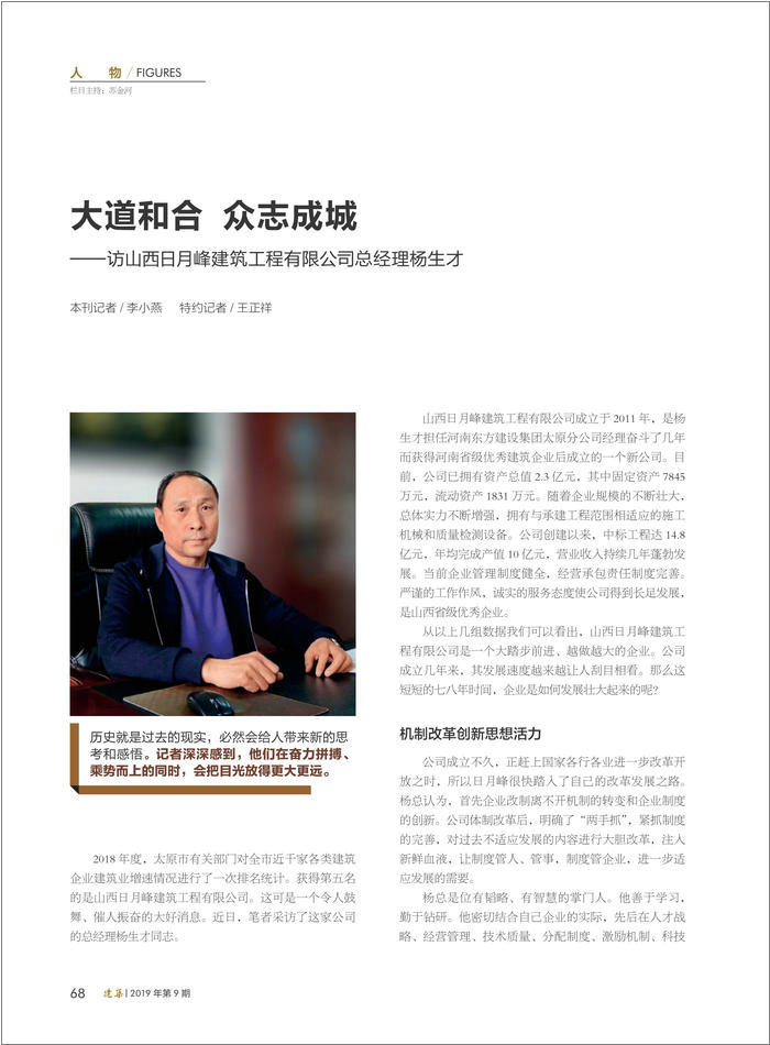 ——訪山西日月峰建筑工程有限公司總經理楊生才