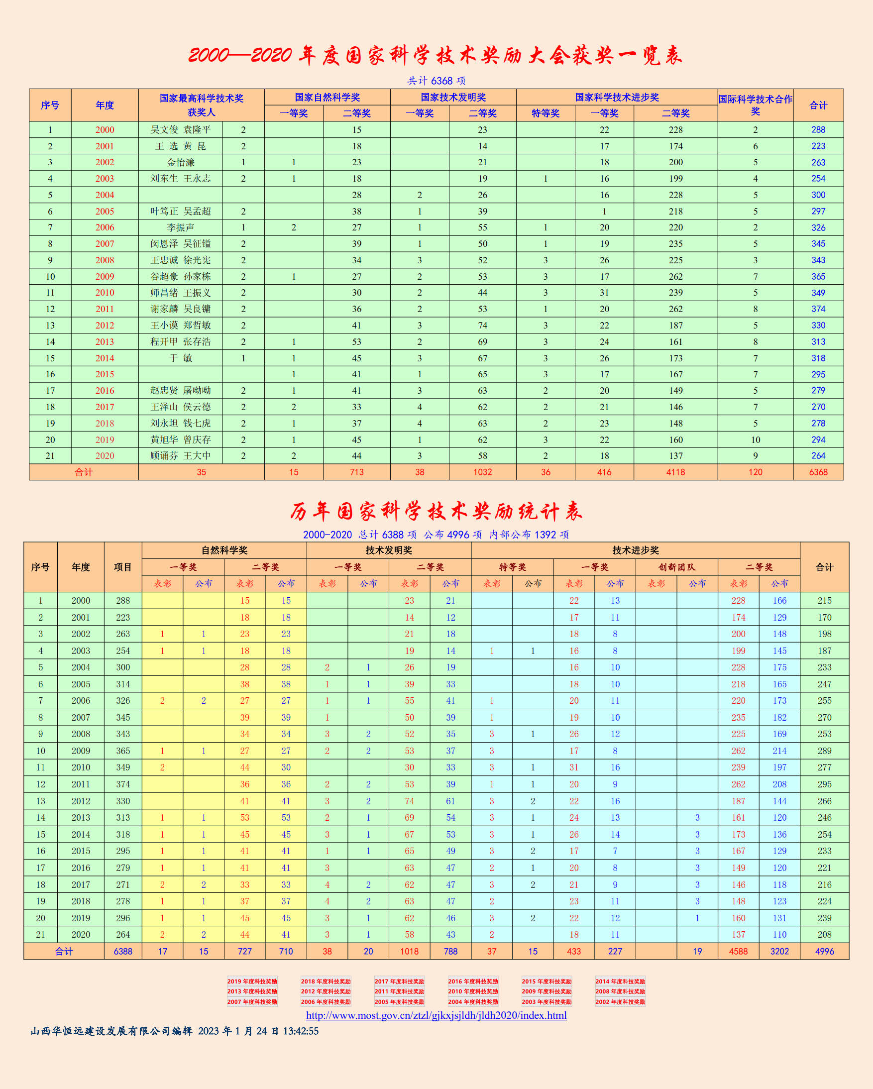 2000—2020年度國家科學技術獎勵大會獲獎名單