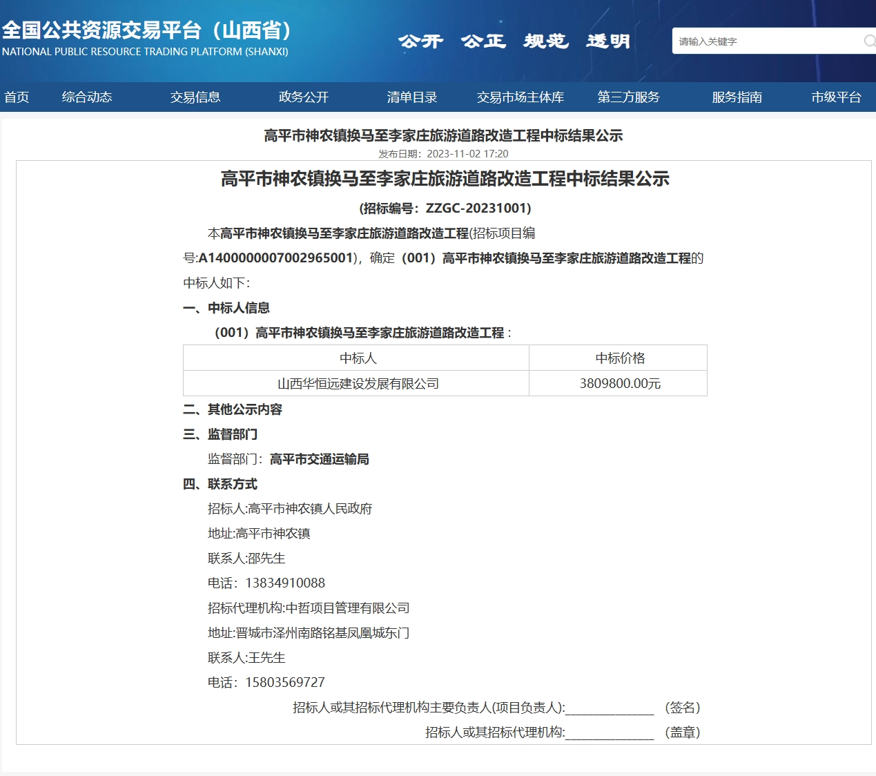 高平市神農鎮換馬至李家莊旅游道路改造工程