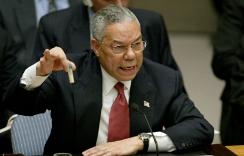 美國前(qian)國務卿鮑威(wei)爾指控伊(yi)拉克擁有“大(da)規模殺傷性武(wu)器”的(de)名場(chang)面