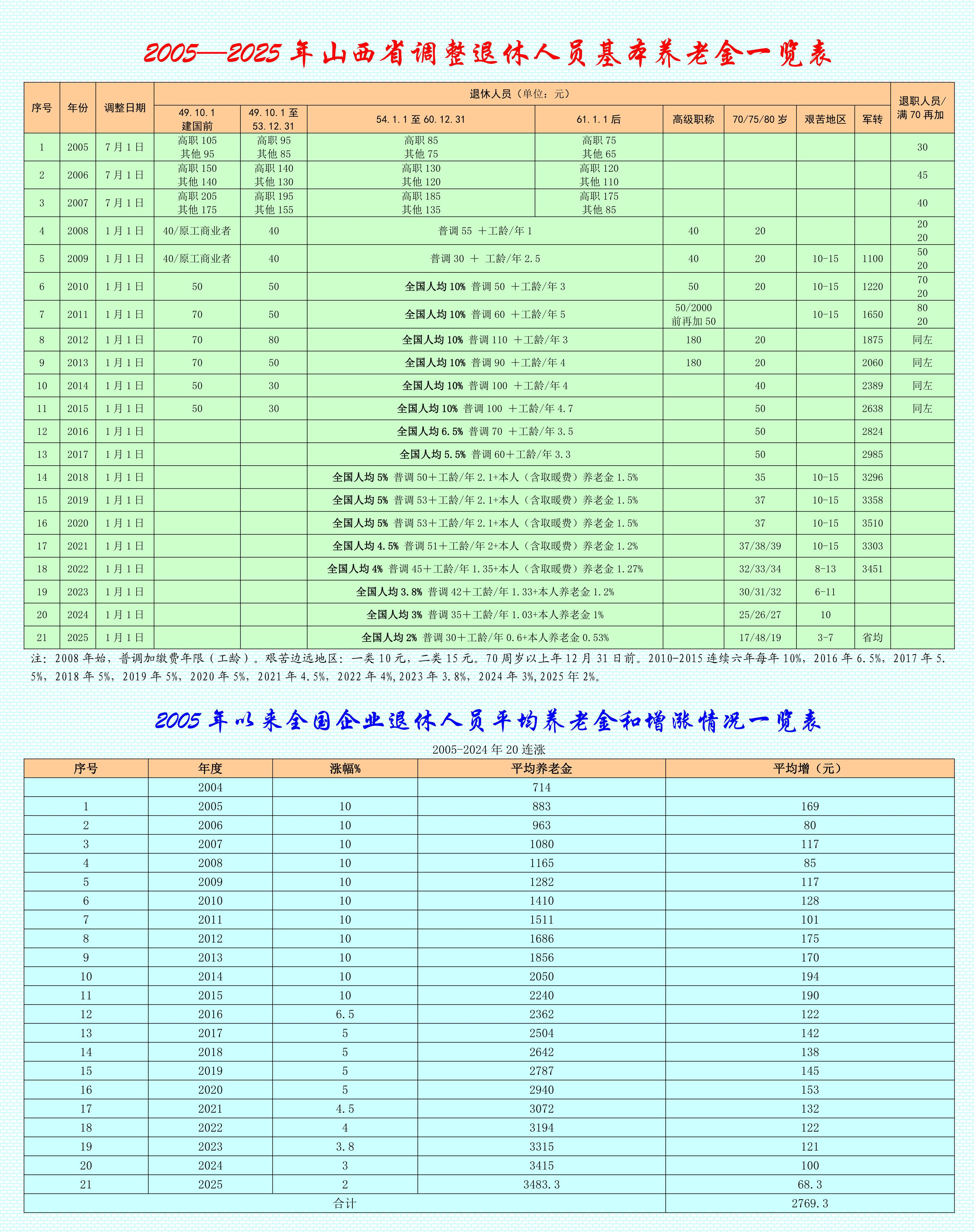從2025年1月1日(ri)起,對 2024年12月31日(ri)前企(qi)業(ye)和機關事(shi)業(ye)單(dan)位已按規定(ding)辦(ban)理退(tui)休(職)手續并按月領取(qu)基(ji)本(ben)養老(lao)金的退(tui)休人員調整基(ji)本(ben)養老(lao)金。