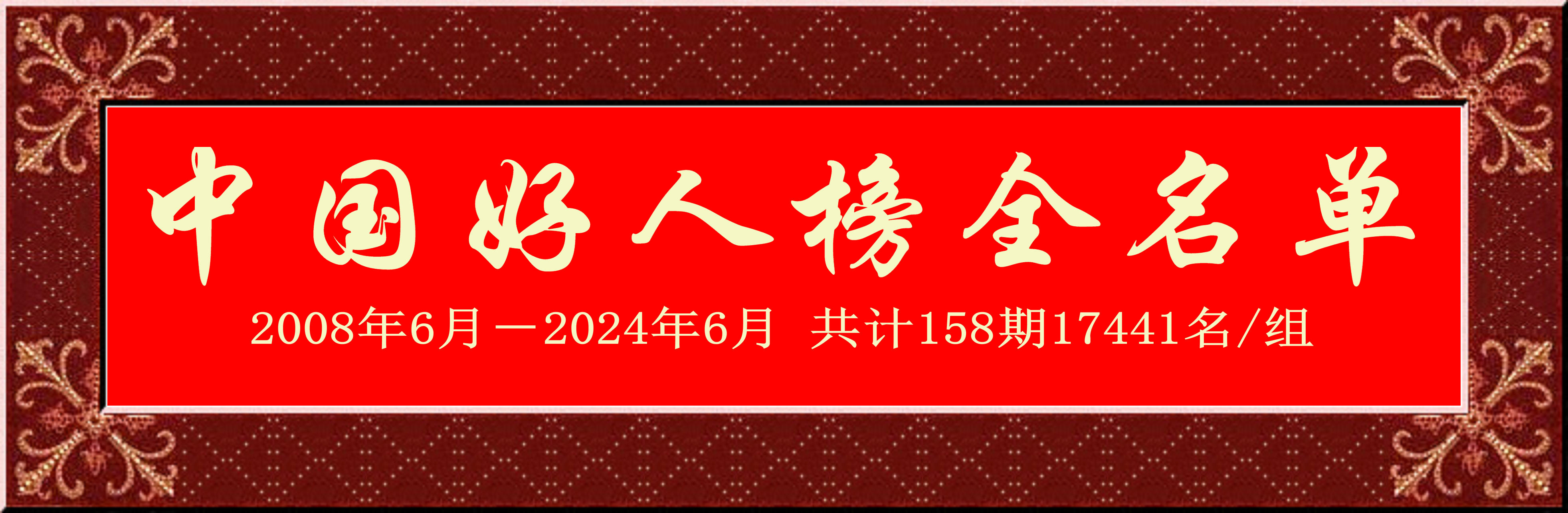 上榜好(hao)人(ren)(ren)中,有捐出(chu)百(bai)萬(wan)元資助(zhu)困難學子的(de)教授伉儷(li)李安(an)昌、曹(cao)瓔珞;有防(fang)汛巡查(cha)中為勇救落水者不幸(xing)犧牲的(de)鄉鎮(zhen)干(gan)部朱(zhu)如新;有19年照顧植物人(ren)(ren)工友及(ji)其家人(ren)(ren)的(de)車間(jian)鉗工趙全(quan)喜;有與(yu)歹徒(tu)搏斗獻出(chu)生命的(de)27歲基層民(min)警武霖;有照顧癱瘓親人(ren)(ren)40余載的(de)普通(tong)村(cun)婦(fu)何明(ming)蘭……他們來(lai)自千(qian)千(qian)萬(wan)萬(wan)身邊(bian)好(hao)人(ren)(ren),用實(shi)際行動詮(quan)釋了平凡英雄的(de)可(ke)貴(gui)精神品質。
