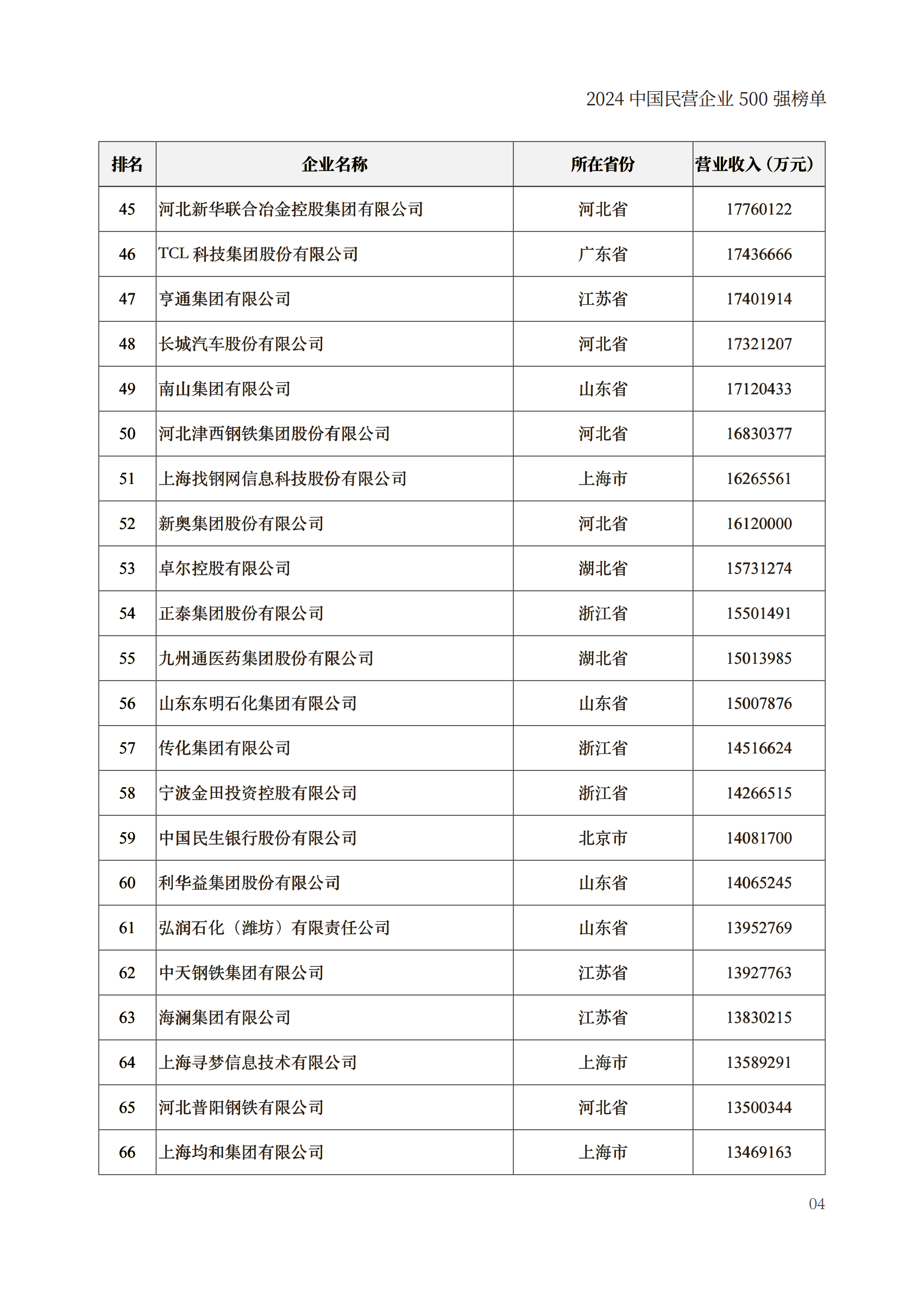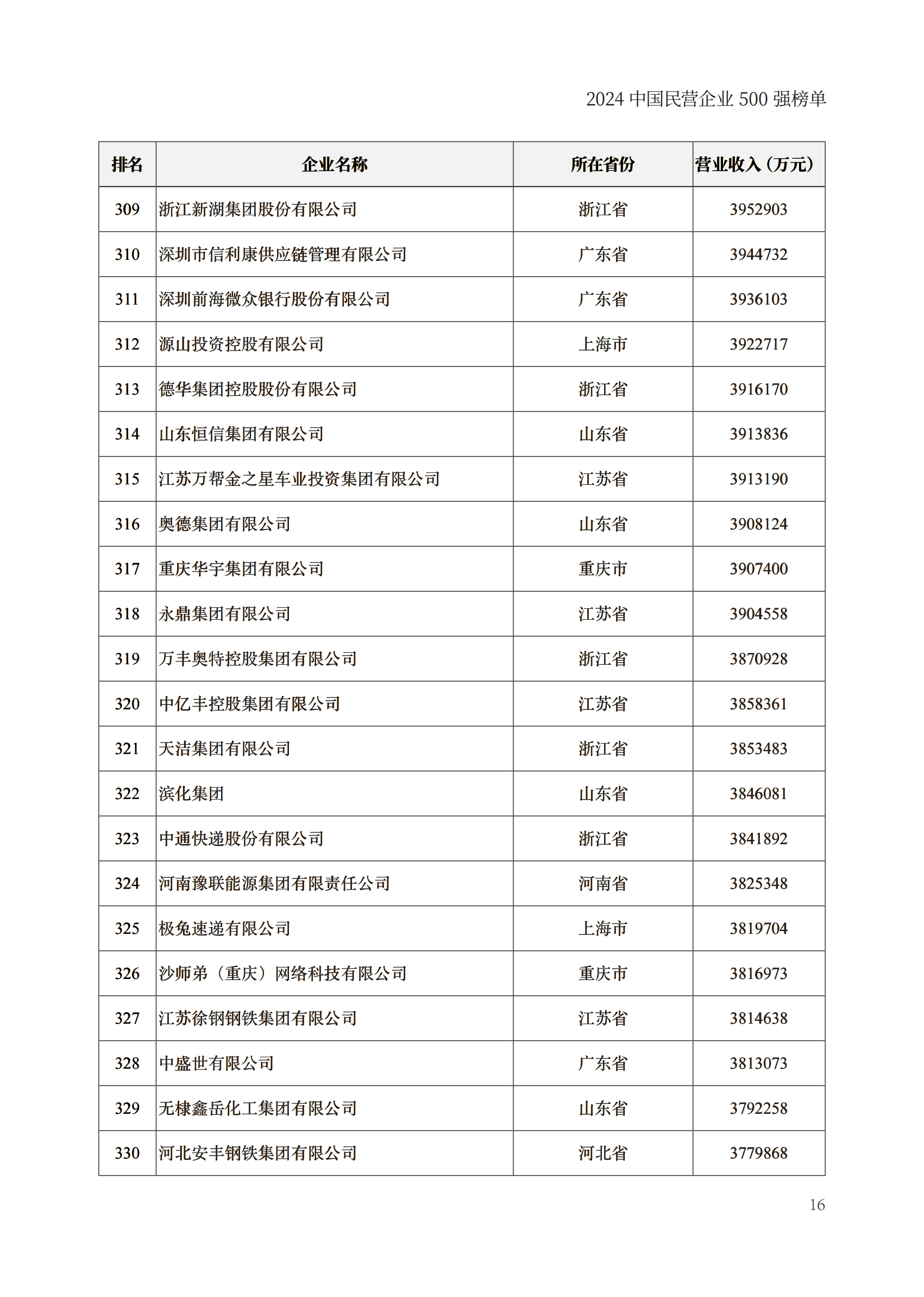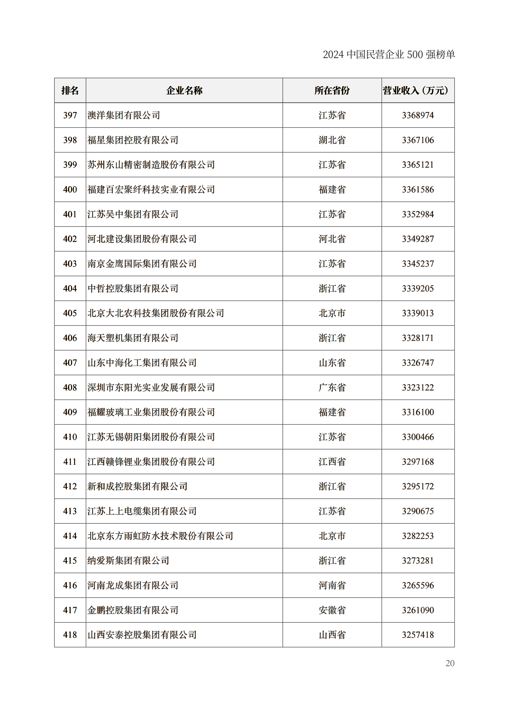 【行業動態】2024中國民營企業500強 制造業民營企業500強 服務業民營企業100強