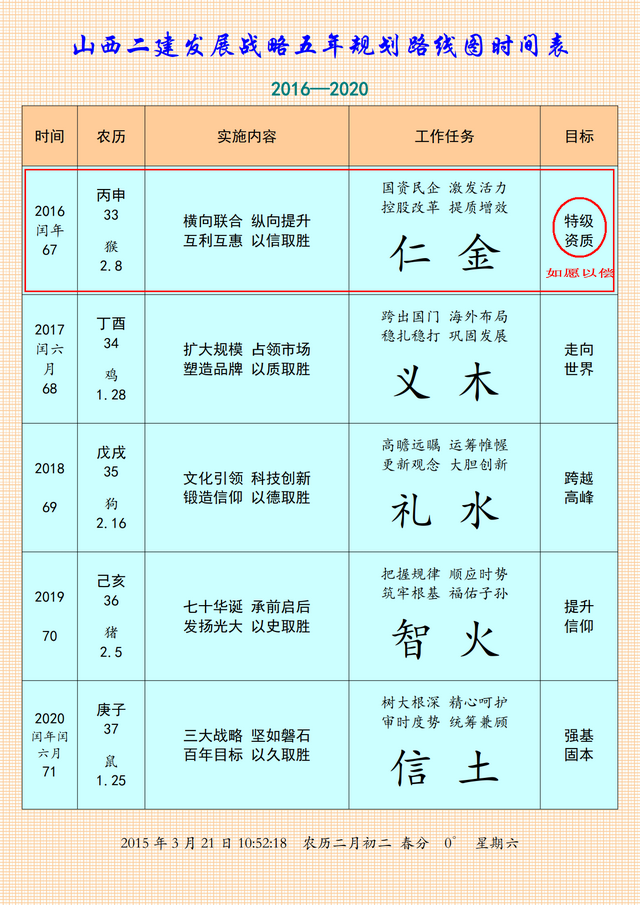 2011年1月5日第一次與山西二建第一任掌門人會悟,2015年1月5日山西二建集團有限公司掛牌成立,2016年獲得住建部核準的建筑工程總承包特級資質,完美實現了《思考》第一階段的戰略目標!——