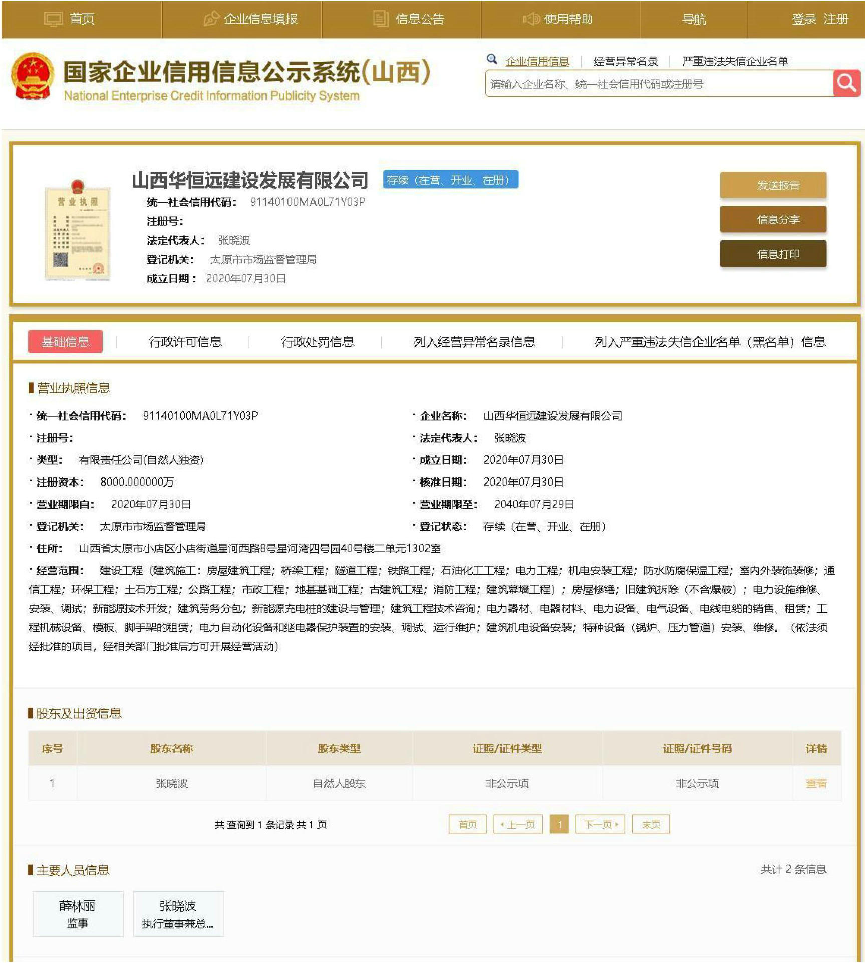于是,在2020年7月25日零點發短信給楊總:《山西華恒遠建設發展有限公司》,測試 95 分。。預注冊這個公司名,打開幸運之神的大門。盡快辦。華恒遠,“中華永恒久遠”之意,成功的大公司!