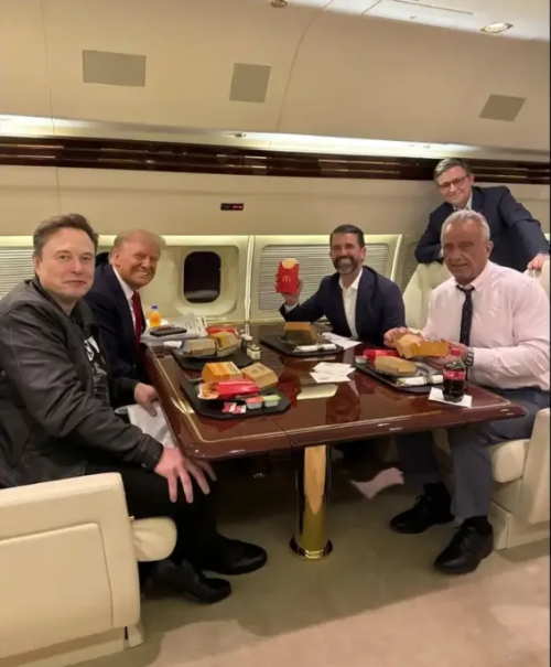 在(zai)飛機上吃飯的(de)時(shi)候,美國眾(zhong)議院院長,政治意義上的(de)三把手約(yue)翰遜站著,而馬斯克不僅坐著還坐在(zai)特(te)朗普身邊。