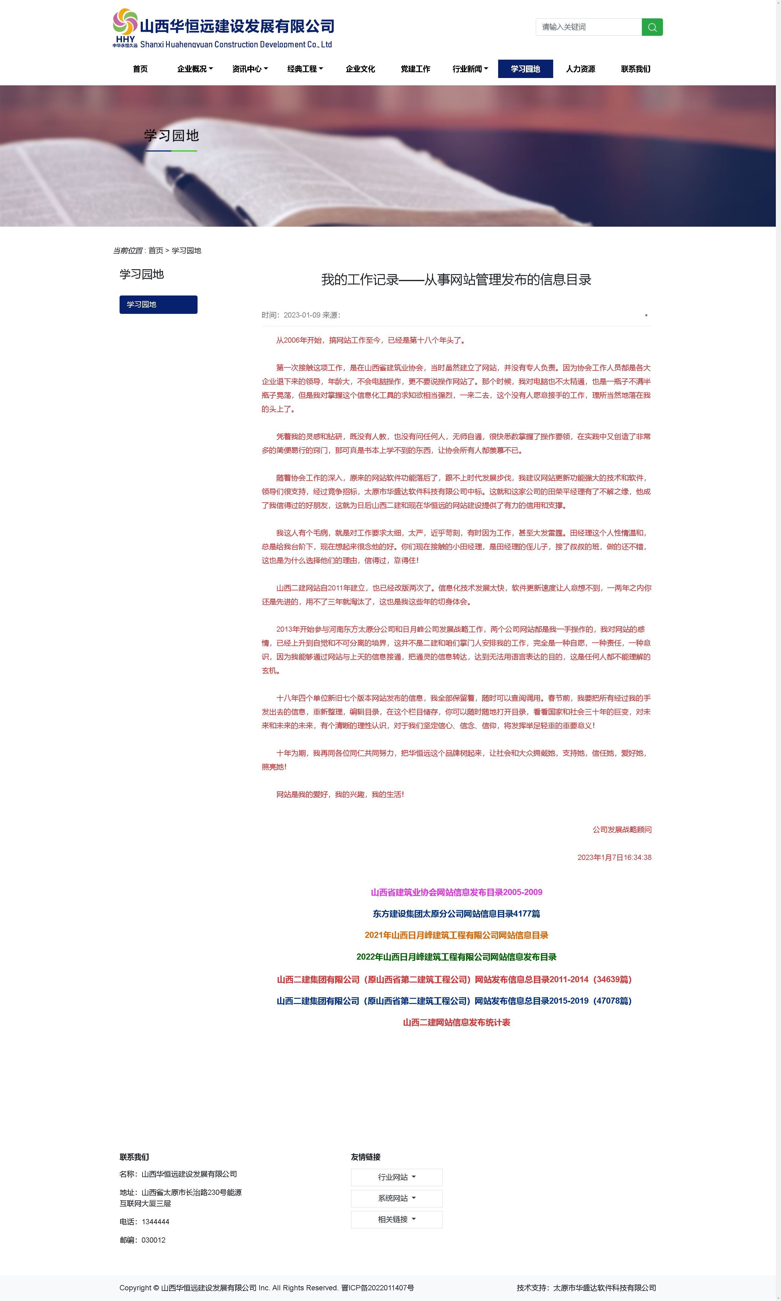 第一(yi)次(ci)接觸(chu)這項工(gong)作,是在山西省(sheng)建(jian)筑業協(xie)會(hui),當時(shi)雖然(ran)建(jian)立了(le)網站(zhan),并沒有專(zhuan)人負(fu)責。因為協(xie)會(hui)工(gong)作人員都是各大企業退下來(lai)的(de)領導,年(nian)齡大,不(bu)會(hui)電腦(nao)操作,更不(bu)要說操作網站(zhan)了(le)。那個時(shi)候,我(wo)對電腦(nao)也不(bu)太精通(tong),也是一(yi)瓶子不(bu)滿半瓶子晃蕩,但是我(wo)對掌(zhang)握這個信息(xi)化(hua)工(gong)具的(de)求(qiu)知欲相當強烈(lie),一(yi)來(lai)二去,這個沒有人愿意接手的(de)工(gong)作,理所當然(ran)地落在我(wo)的(de)頭上了(le)。