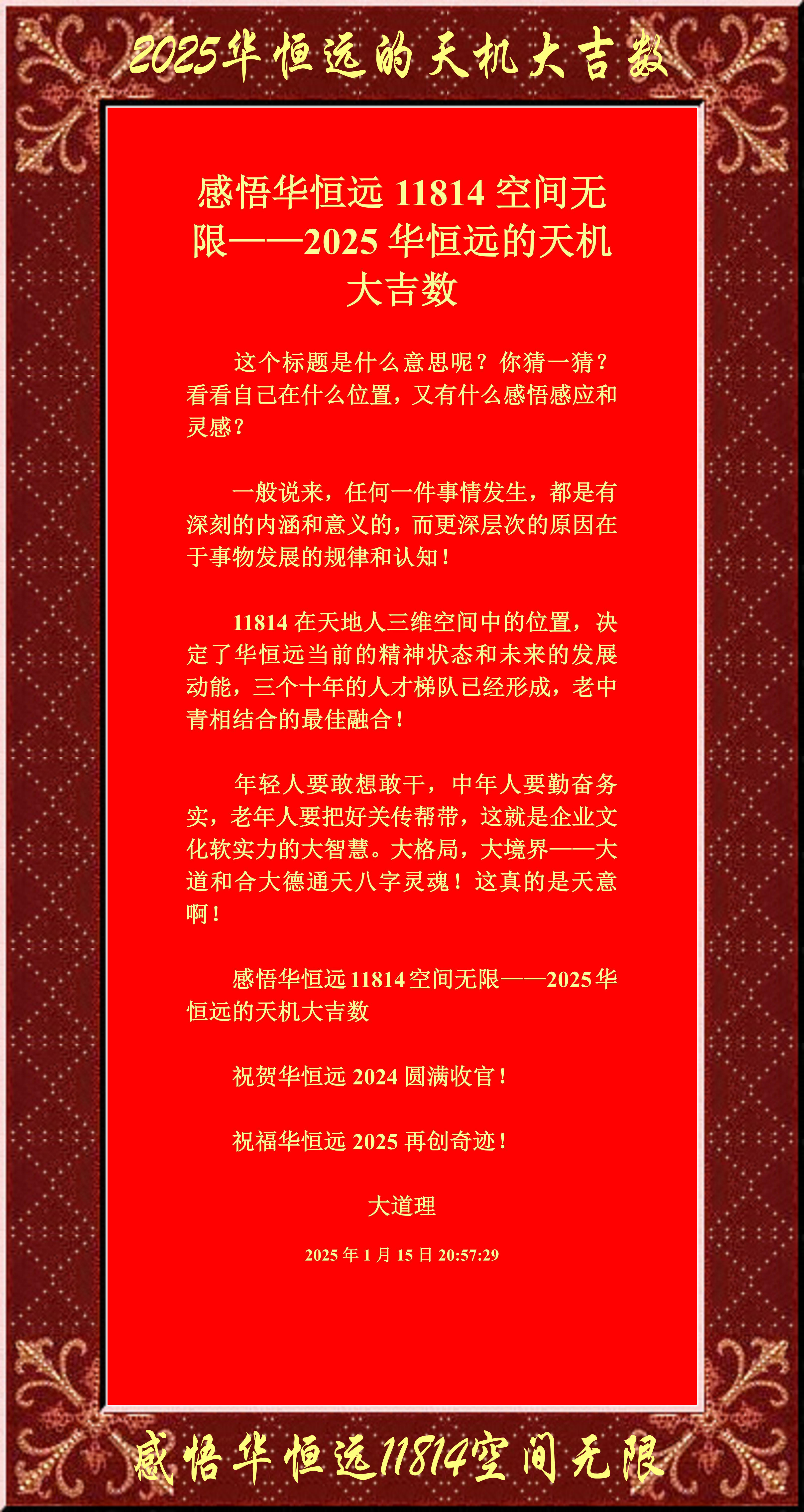 感悟華恒遠11814空間無限——2025華恒遠的天機大吉數