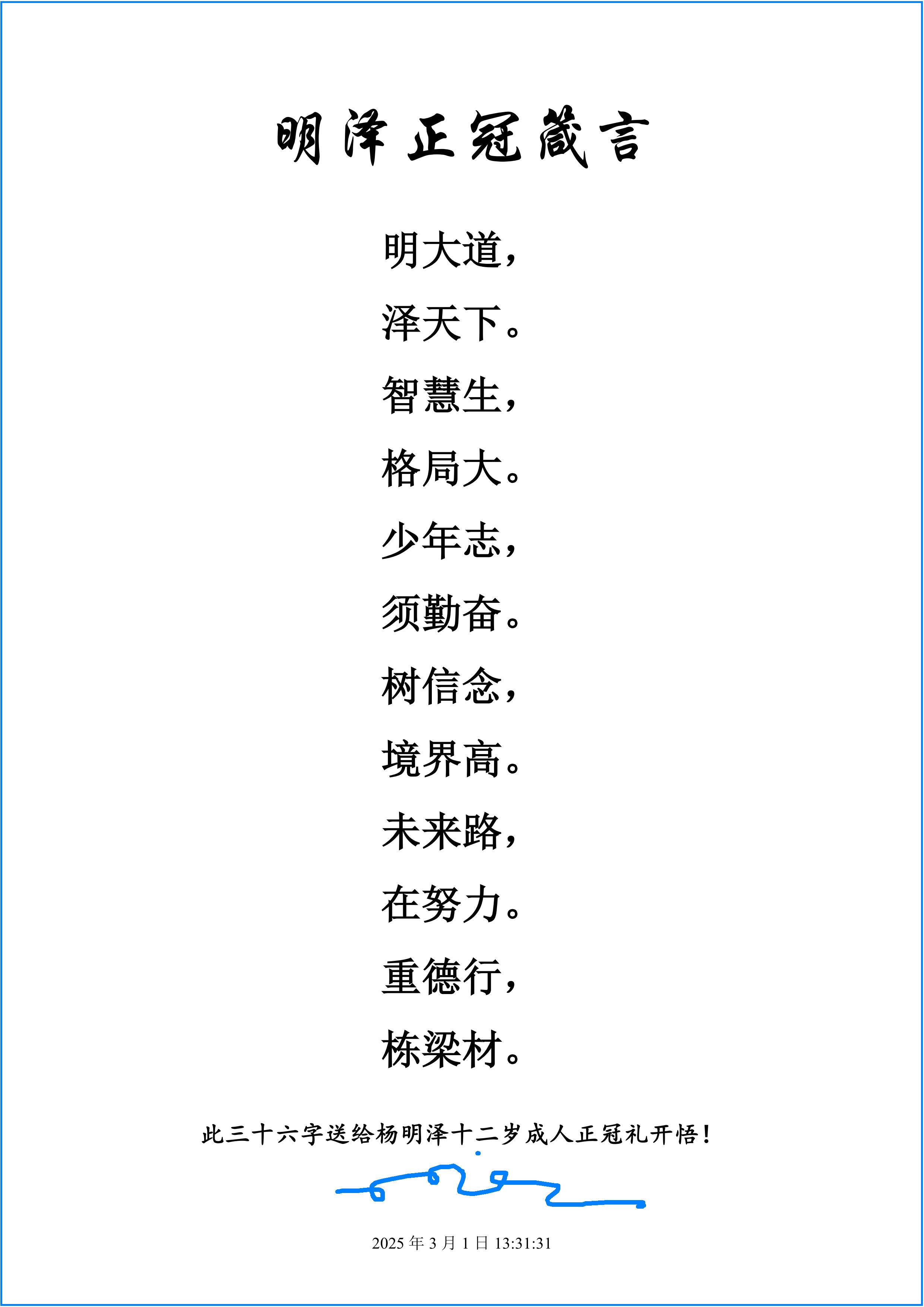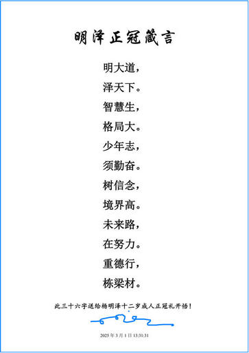 祝福(fu)明(ming)軒、明(ming)澤、明(ming)玉,成(cheng)就(jiu)未(wei)來(lai),成(cheng)就(jiu)理想,成(cheng)就(jiu)大業!