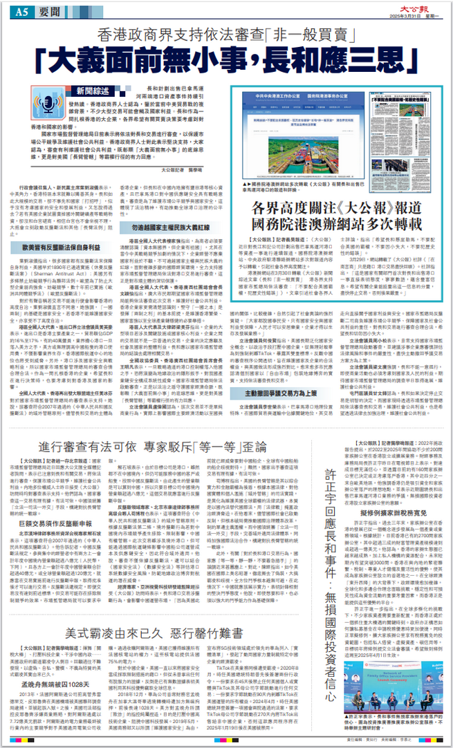 也就是說,貝萊德收購港口,并非單純出于商業目的,那么中方有理由懷疑,美方在這場交易中使用了不正當手段,也有理由懷疑,長和出售港口,也并非出于利益需求。另外,根據國際法,企業有權自主處置資產,但涉及戰略領域時,主權國家可援引“國家安全例外”條款干預。所以從法律層面上來講,中國政府介入調查,合情合理。