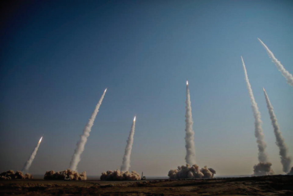 伊朗導彈齊射畫面。由于當前以色列的空中優勢,如何在長期對峙中維持這樣的畫面,也是擺在伊朗面前的一大課題。