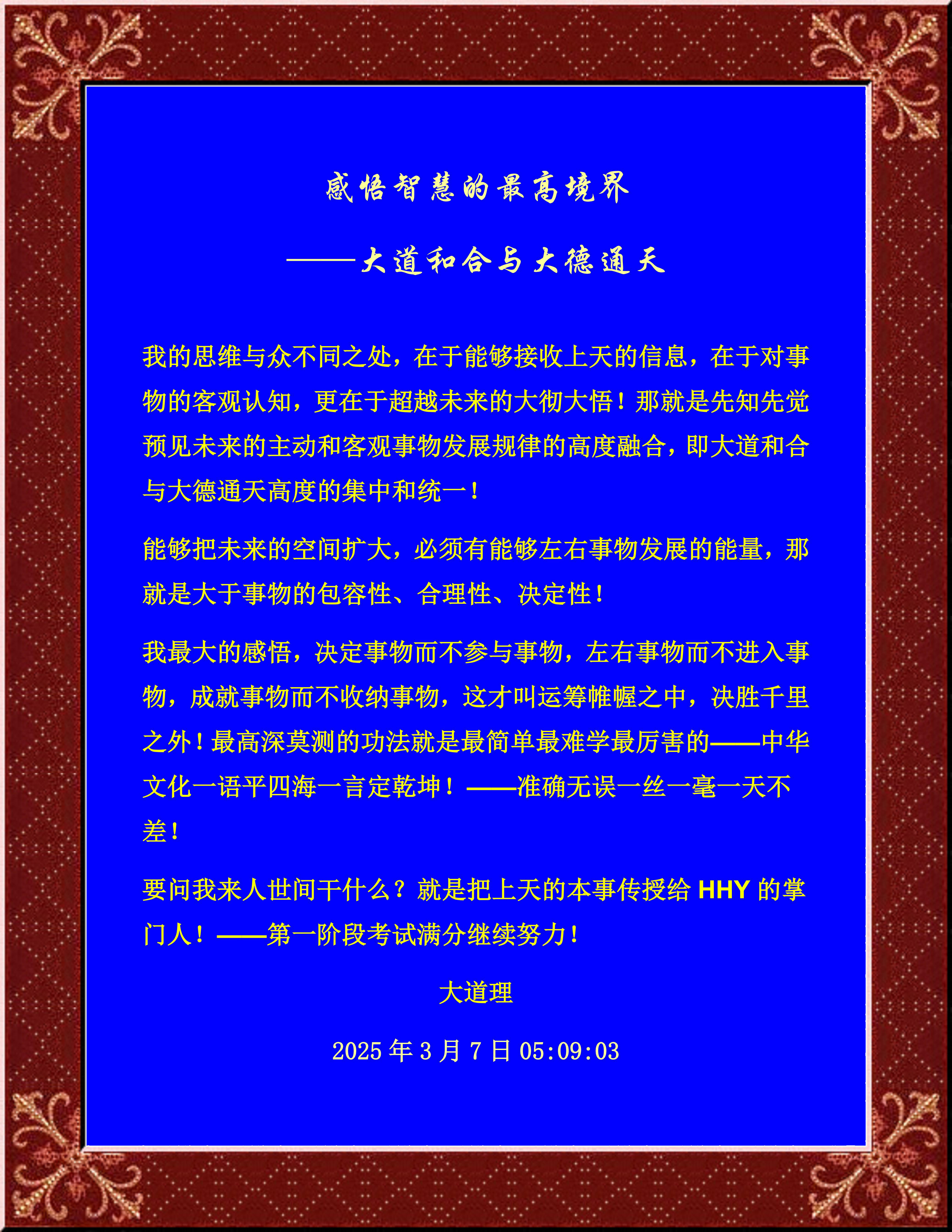 這一輩子很自豪,這一輩子很欣慰,這一輩子很滿意,因為我的所有付出都得到了回報,上天有眼不負我之情我之意我之愿,把人生最大的智慧、格局、境界,毫不吝嗇賦予從善如流的有緣人!