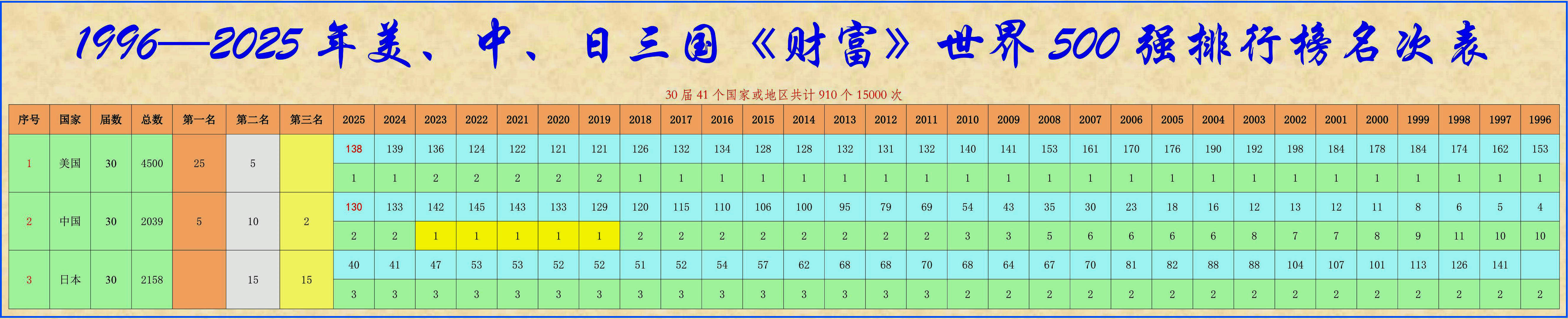 2025年《財富》世界500強、美國500強、,三大排行(xing)榜橫(heng)向(xiang)縱向(xiang)比較(jiao),能夠給(gei)我們(men)清晰(xi)展示全球各國經(jing)濟實(shi)力和(he)社(she)會發展態勢,能夠給(gei)我們(men)很多的啟示和(he)思考的空間(jian)和(he)目標(biao),更能夠激(ji)發中國企業發憤圖強做(zuo)大做(zuo)強,