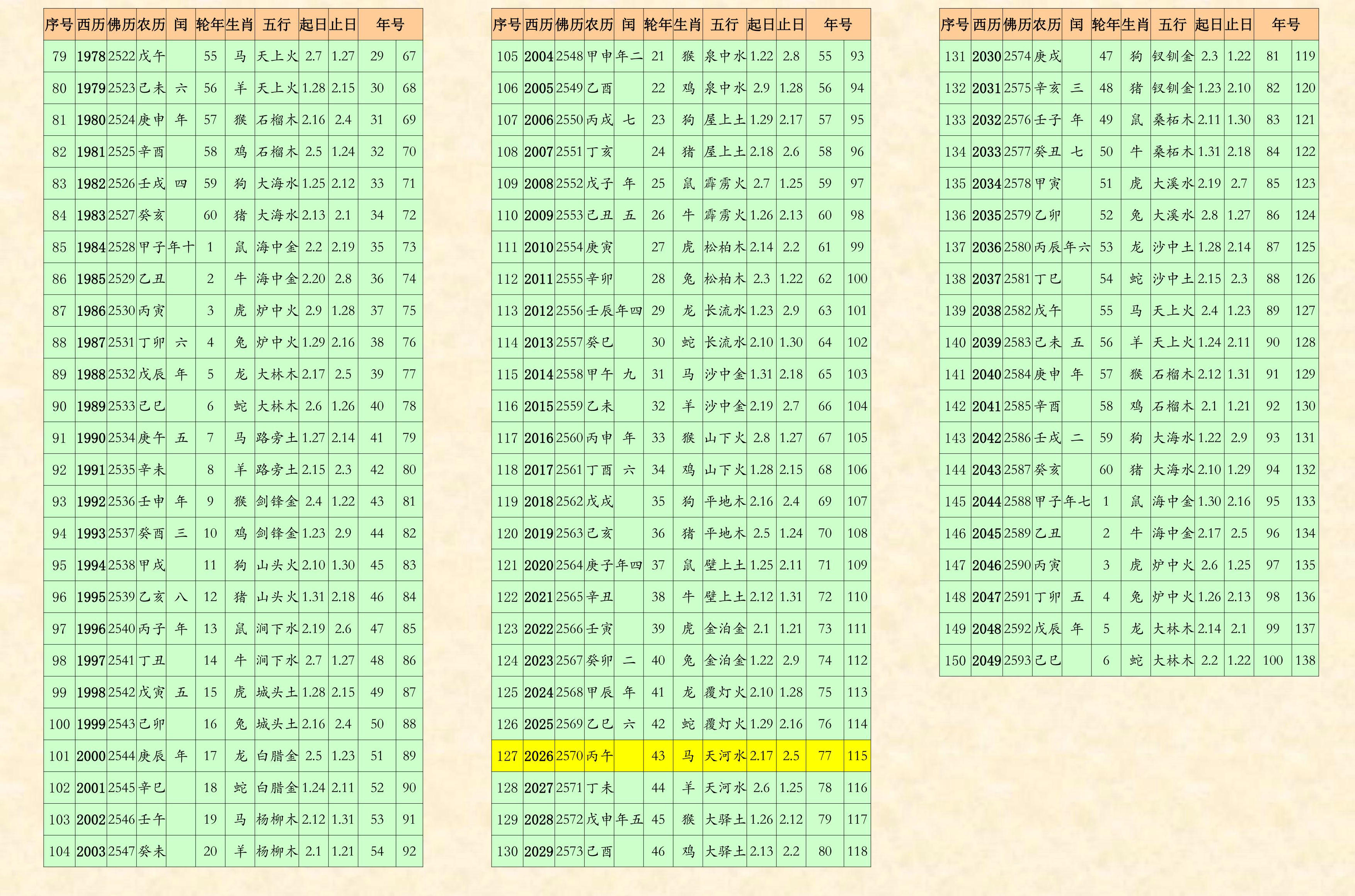 【學習園地】2026年農歷丙午年生肖年齡對照表