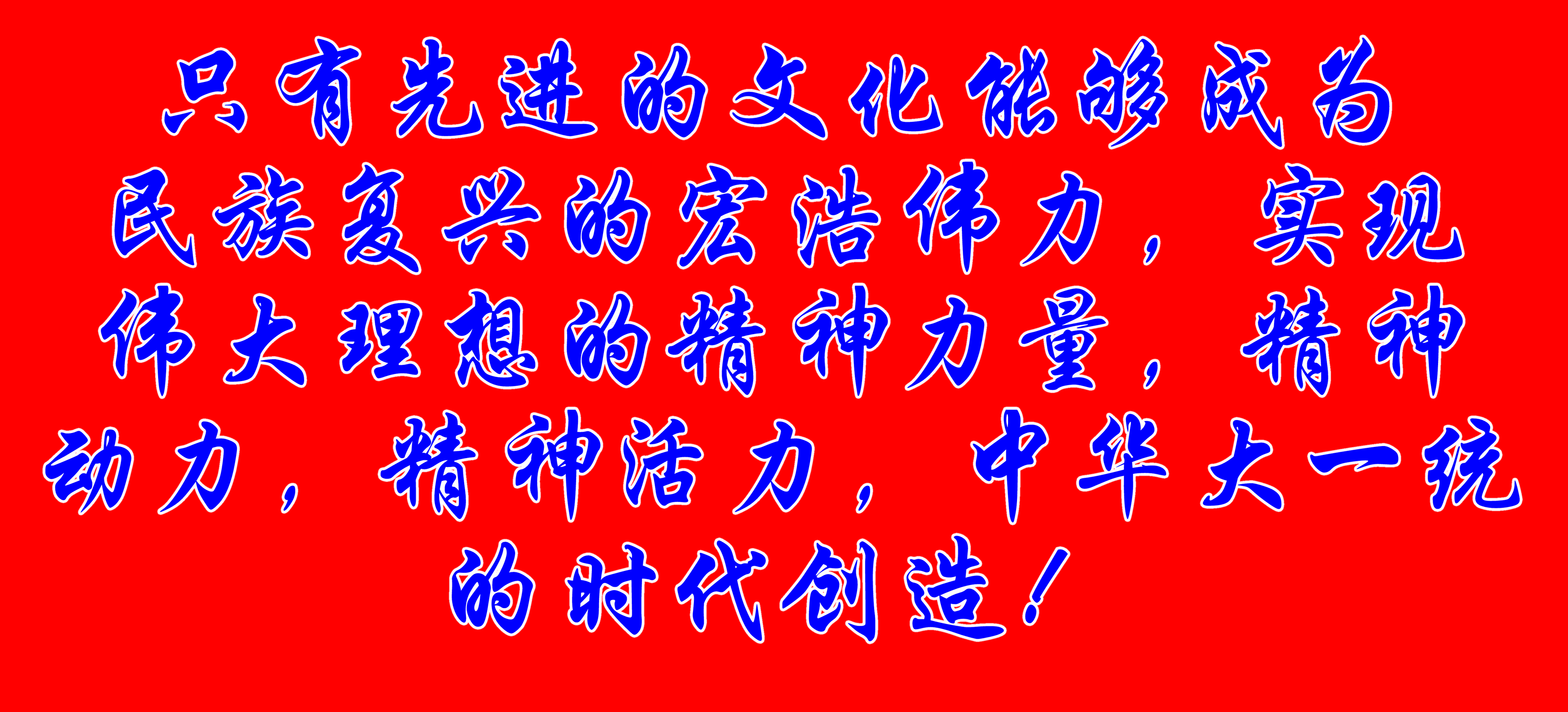 只(zhi)有先進的文(wen)化能夠成為民族復(fu)興(xing)的宏浩偉力,實現偉大(da)理想的精神力量(liang),精神動力,精神活力,中(zhong)華大(da)一統的時代創(chuang)造!