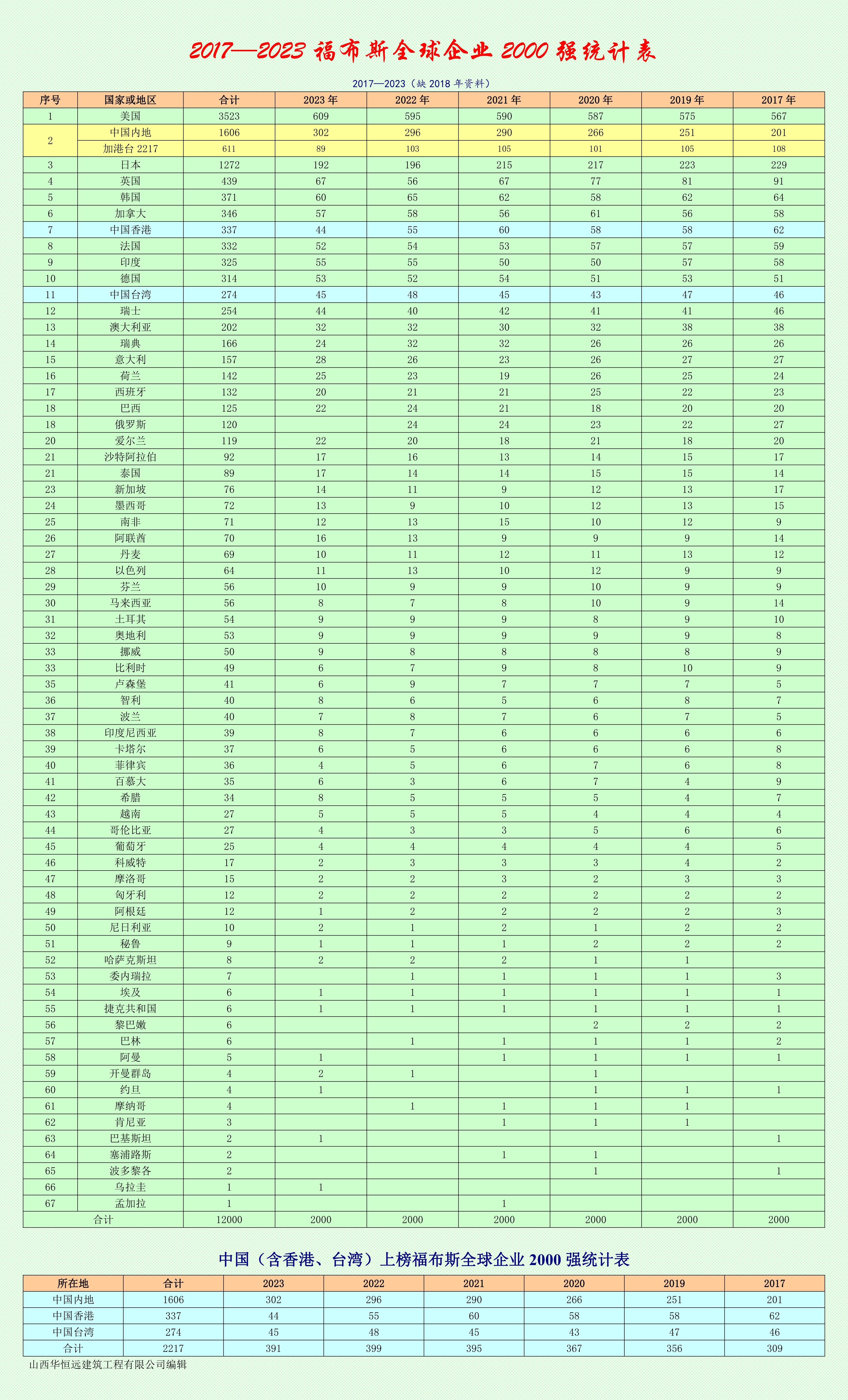 從2003年開始,每年發布全球企業2000強榜單,中國企業以后來者居上的磅礴之勢進軍福布斯,短短二十年,已經成為世界亞軍,這是何等的速度,何等的成就,何等的偉大啊!