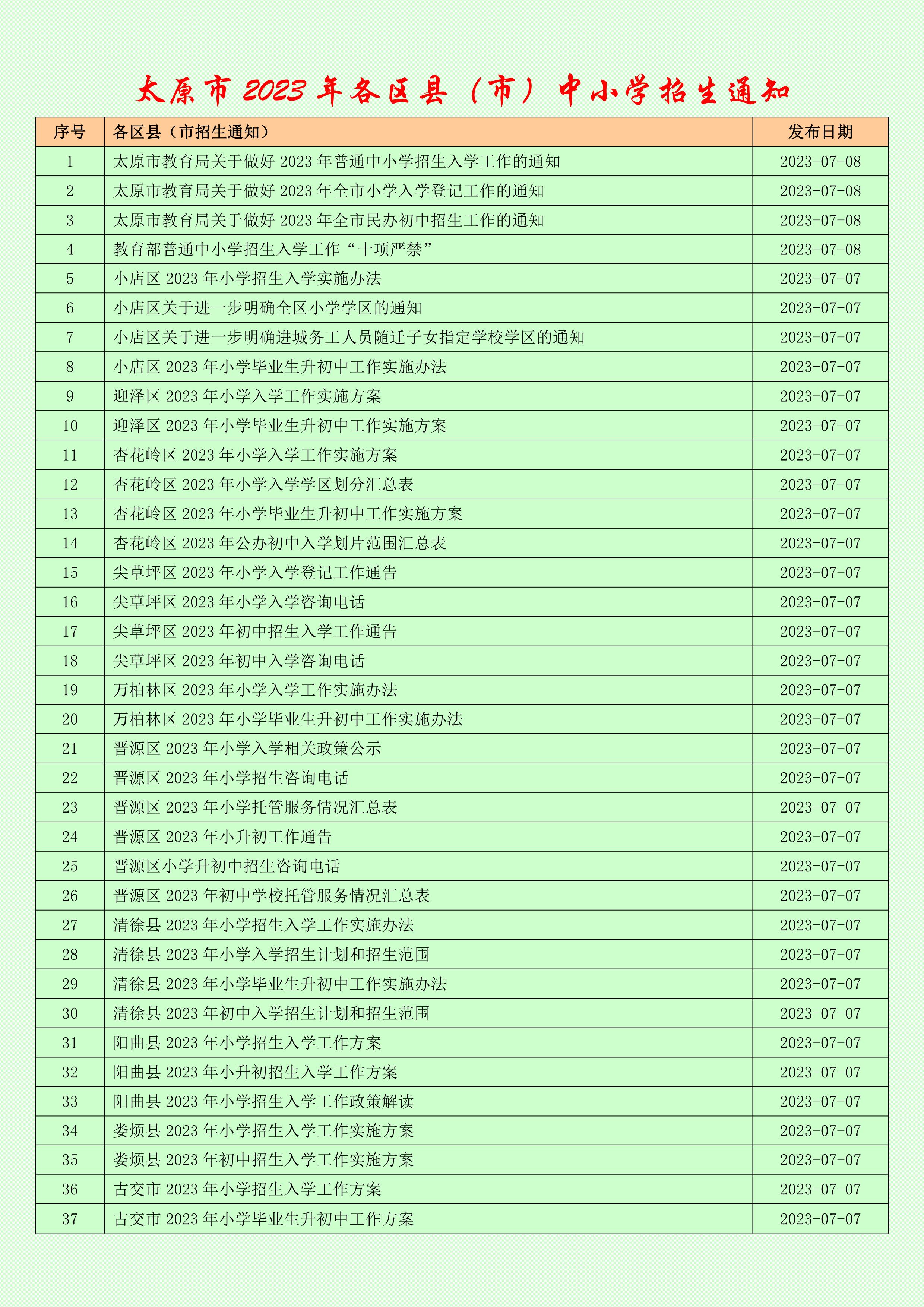 今天一大早,太原市教育局2023年普通中小學校招生入學通知和各區(市)縣入學方案及劃片范圍全部公布了。