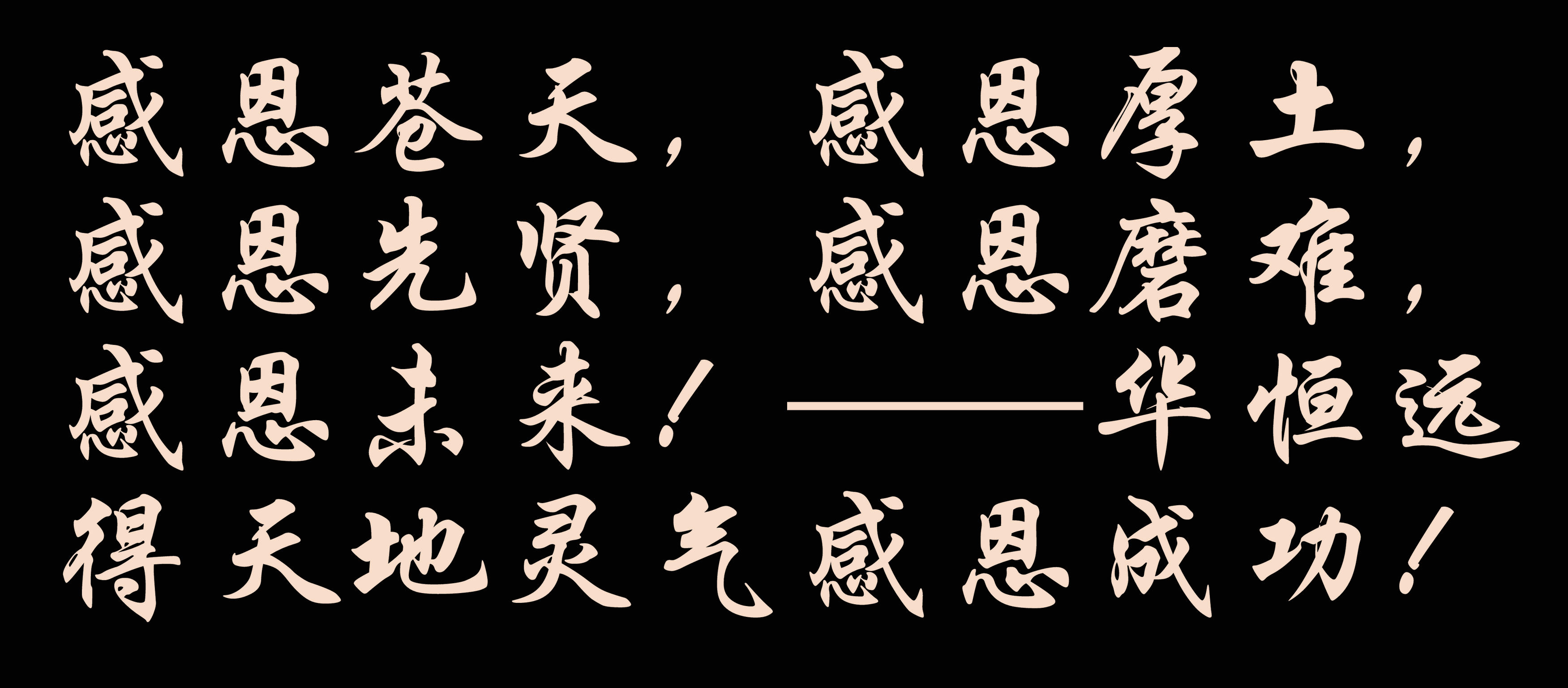 感(gan)恩(en)(en)(en)蒼天,感(gan)恩(en)(en)(en)厚土,感(gan)恩(en)(en)(en)先賢,感(gan)恩(en)(en)(en)磨難,感(gan)恩(en)(en)(en)未(wei)來!——華恒遠得天地靈氣感(gan)恩(en)(en)(en)成功!