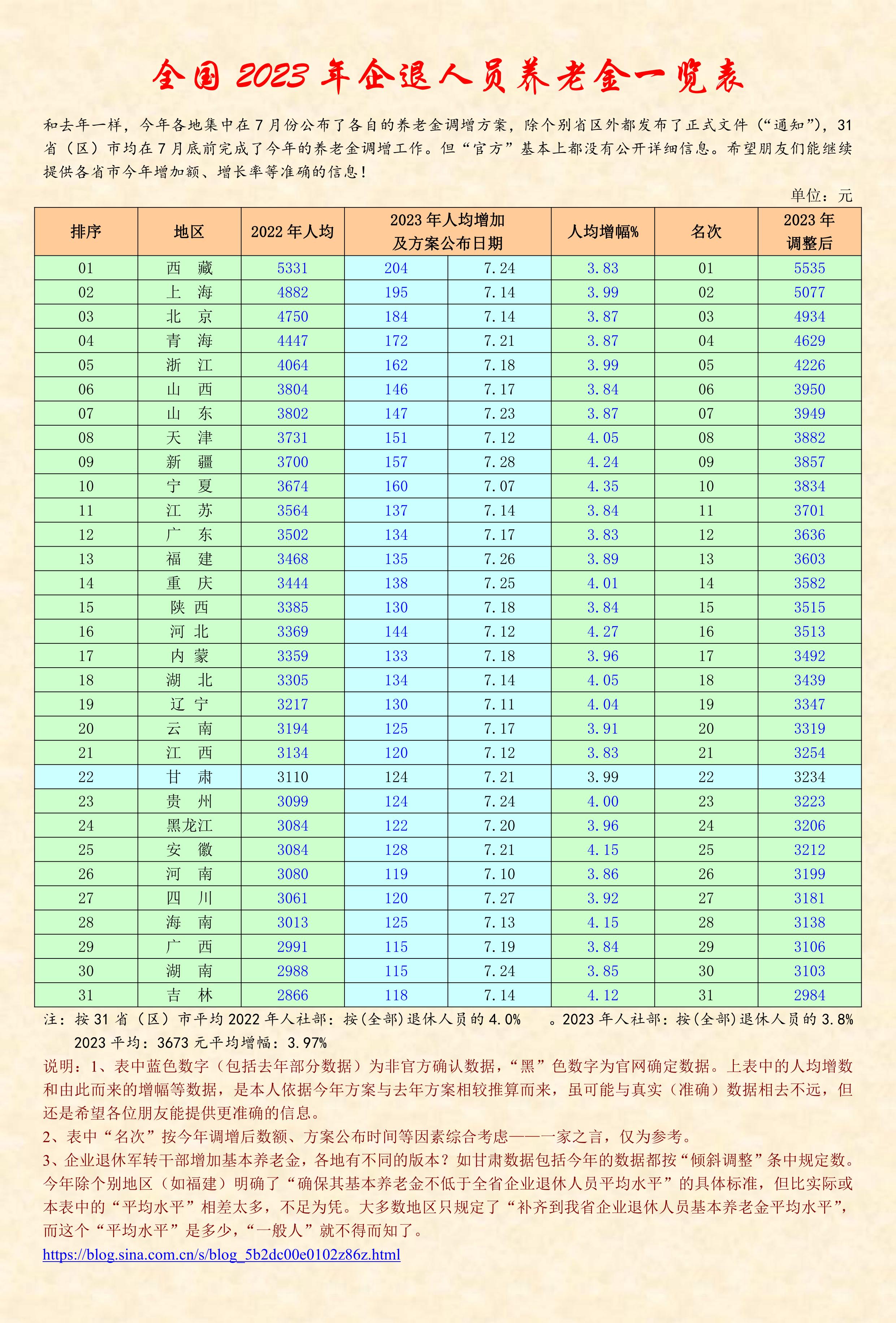 關注他的博客,已經好多(duo)年,他每年不厭其煩做一件事(shi)情,讓我感動,那就是為全國企業退休(xiu)的老(lao)人(ren)們服務,提供當年養老(lao)金信息(xi)的同時(shi),編輯(ji)了比較和匯總,讓大家一看便(bian)知(zhi),心中有數(shu),各得其所!