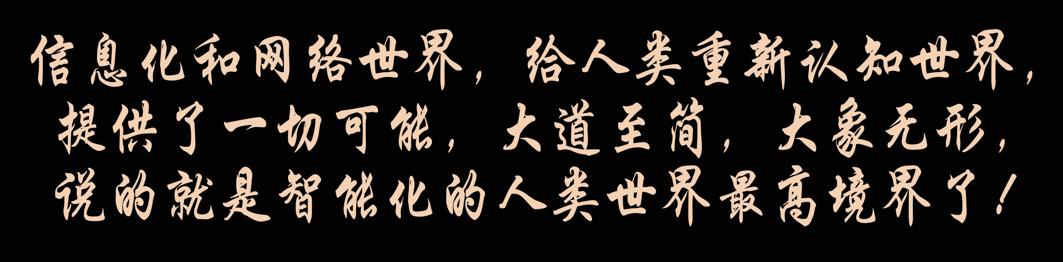 信息化和網絡(luo)世界,給人類重新認(ren)知(zhi)世界,提供(gong)了(le)一(yi)切(qie)可能,大道至(zhi)簡,大象(xiang)無形,說的就(jiu)是智能化的人類世界最高境界了(le)!