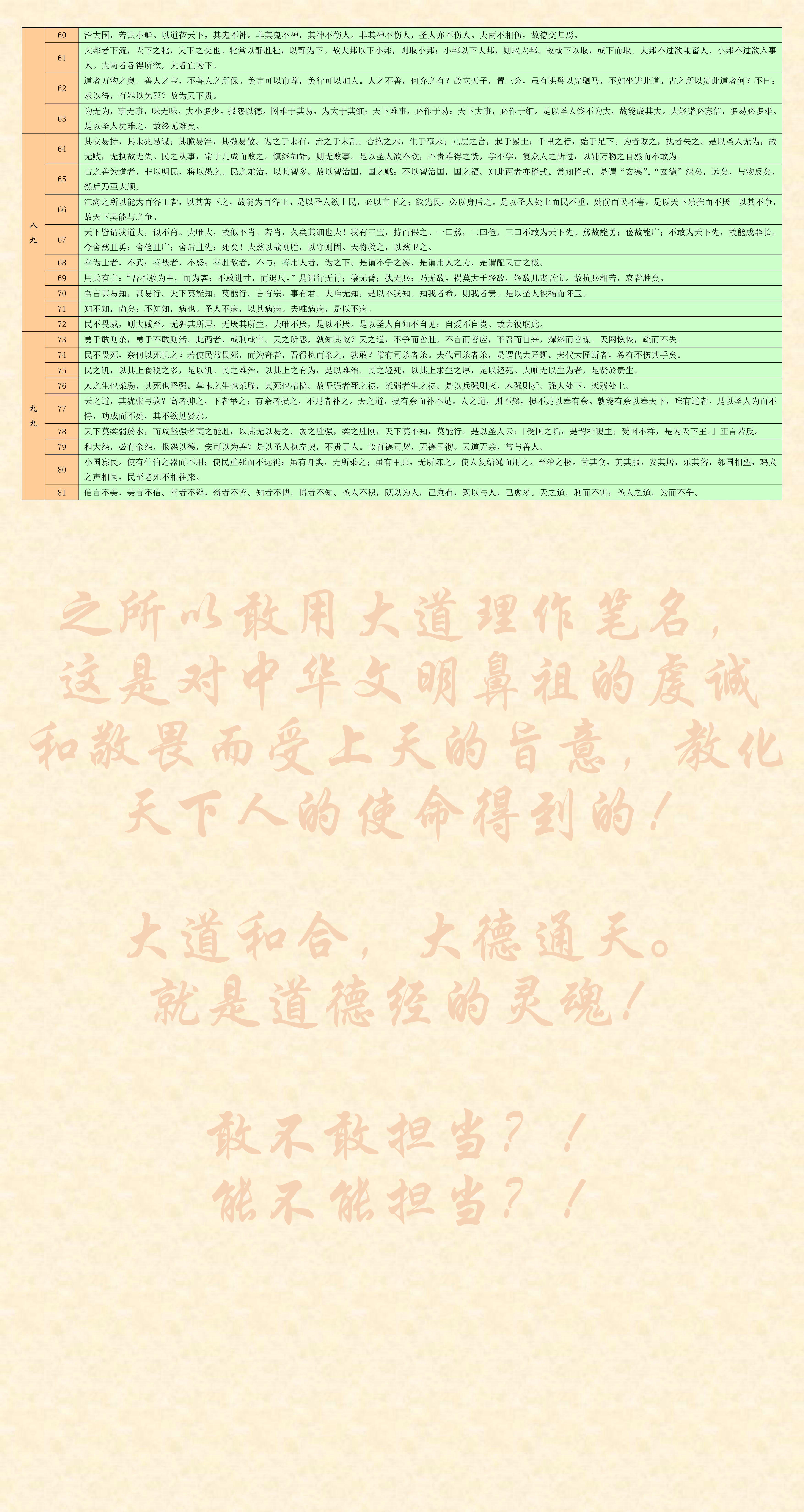 為什么我要用表格的形式編輯《道德經》呢?就是告訴你中華文明和中華文化最高境界什么是大道理!