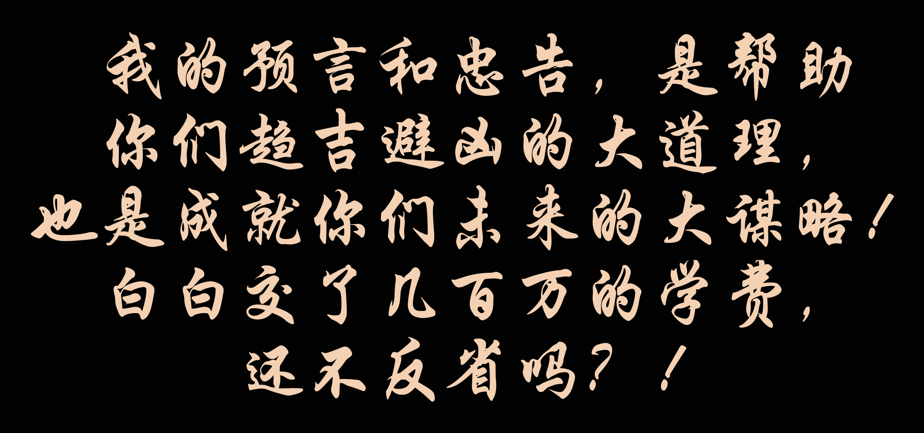 我(wo)的預言和忠(zhong)告,是(shi)幫(bang)助你們(men)(men)趨吉避(bi)兇的大(da)道理,也(ye)是(shi)成就(jiu)你們(men)(men)未(wei)來的大(da)謀(mou)略!