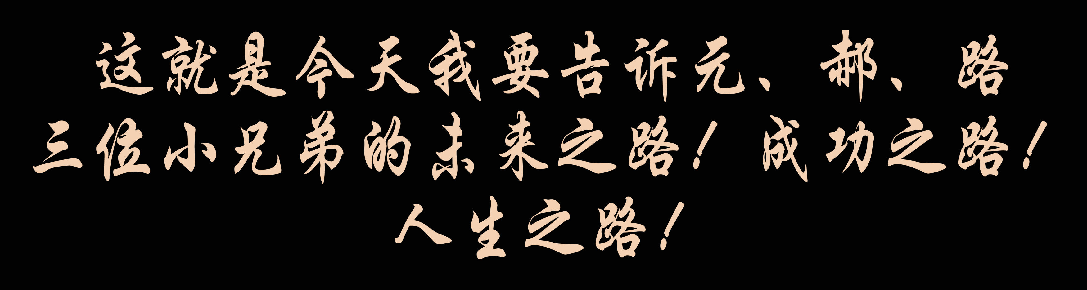 這就是今天我要告訴元、郝、路三位(wei)小(xiao)兄弟(di)的未來(lai)之(zhi)路!成功之(zhi)路!人生(sheng)之(zhi)路!
