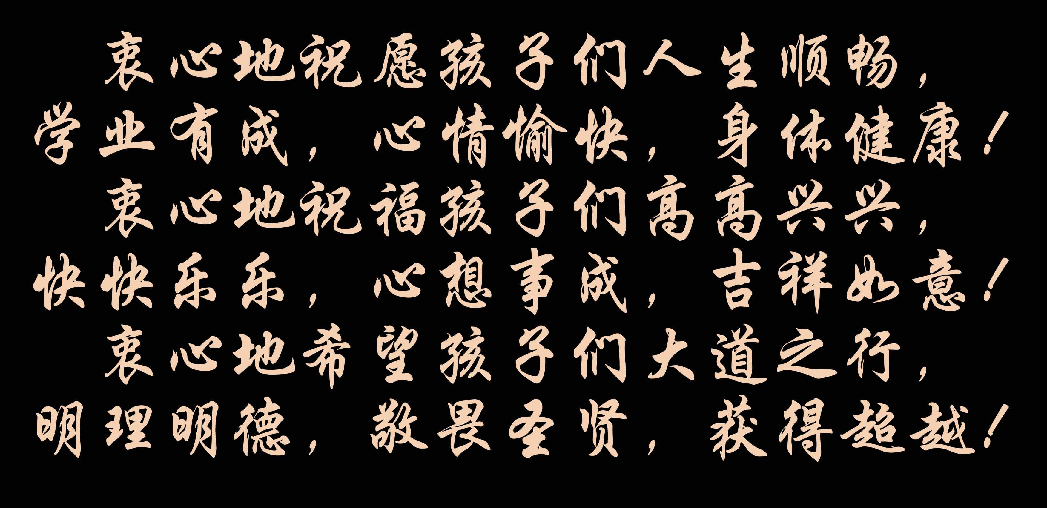 衷心(xin)地(di)祝愿孩子們人生順(shun)暢,學(xue)業有成,心(xin)情(qing)愉快,身體健康!