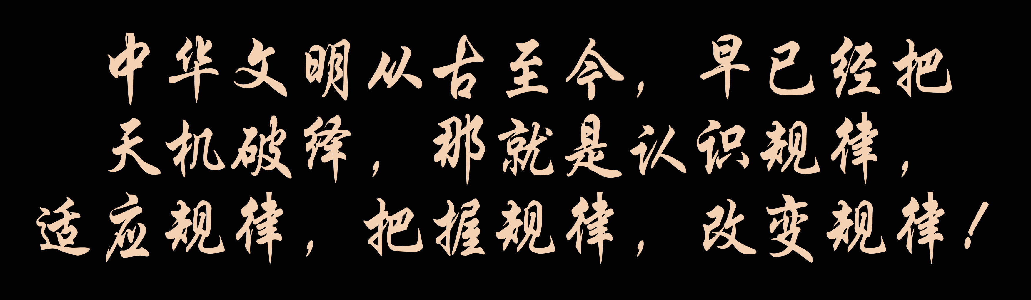 中華(hua)文明從古(gu)至(zhi)今,早已經把天(tian)機破譯(yi),那就是認識(shi)規律(lv),適(shi)應規律(lv),把握規律(lv),改變規律(lv)!