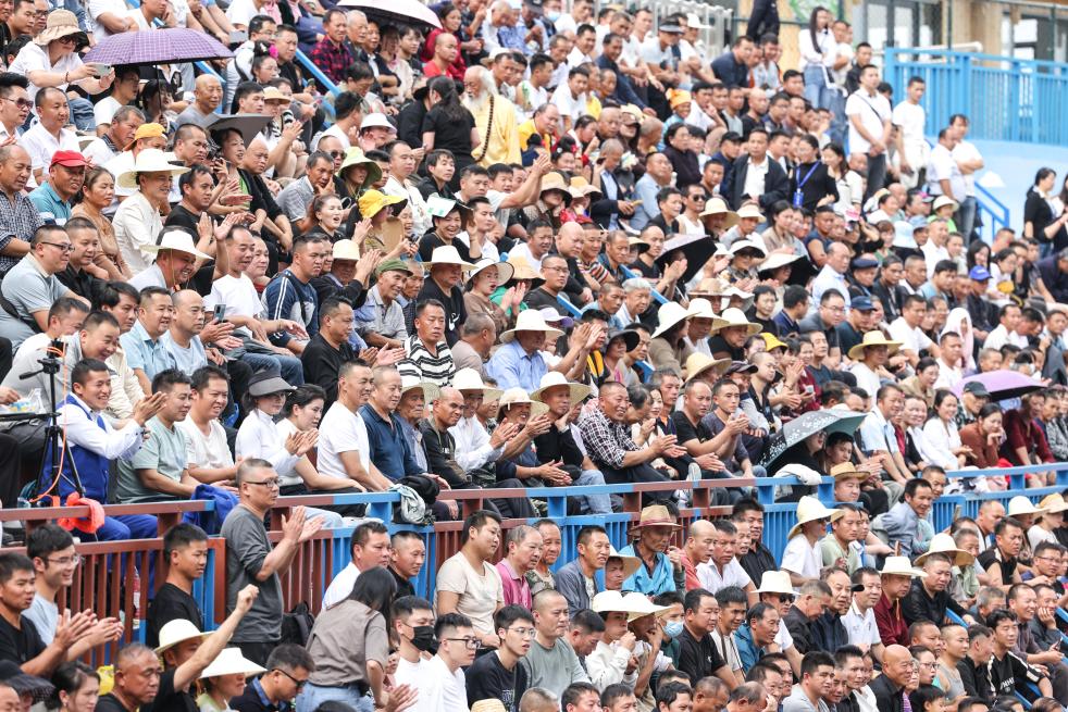 10月25日,全國和美(mei)鄉村(cun)(cun)籃(lan)球大(da)賽(sai)(sai)(村(cun)(cun)BA)總(zong)決賽(sai)(sai)在貴州省臺(tai)江縣臺(tai)盤村(cun)(cun)開賽(sai)(sai),觀(guan)眾在看(kan)臺(tai)上觀(guan)看(kan)比賽(sai)(sai)。新(xin)華社記者(zhe) 歐(ou)東衢 攝