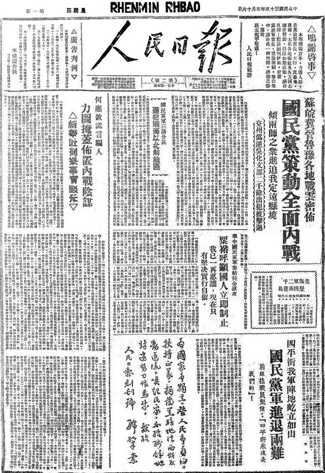基于此,今天把(ba)記錄中華人民共(gong)和國歷史(shi)建國(guo)前夕1946年(文字版)的《人民日報》展現(xian),以饗讀(du)者。