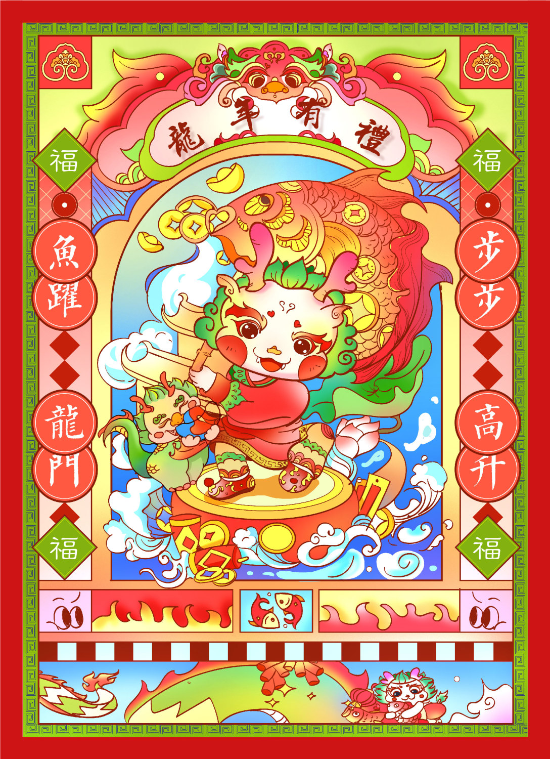 感悟上天恩 五龍降祥瑞 瑞雪兆豐年 甲辰好運來