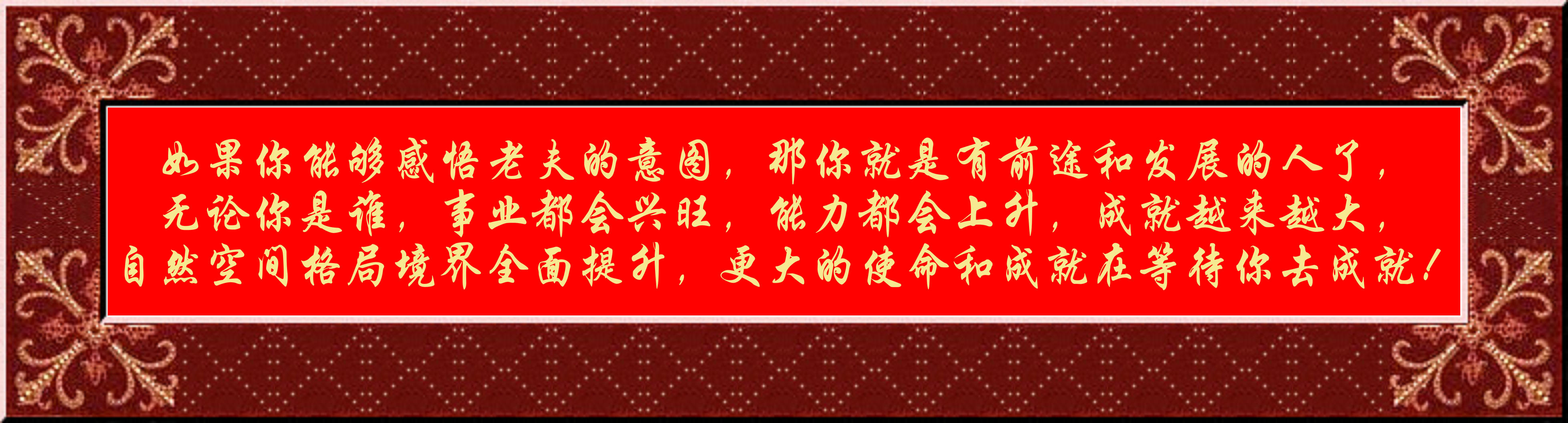 如果你能夠感悟老夫的意圖,那你就是有前途和發展的人了,無論你是誰,事業都會興旺,能力都會上升,成就越來越大,自然空間格局境界全面提升,更大的使命和成就在等待你去成就!